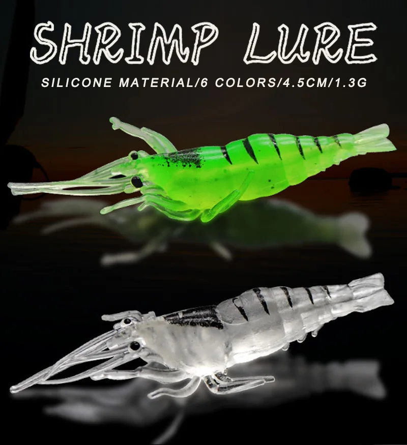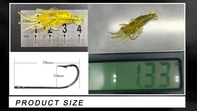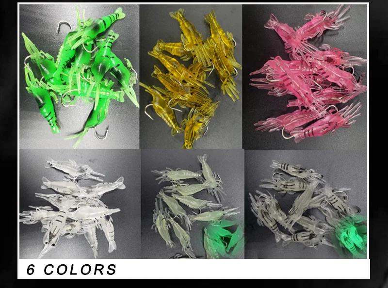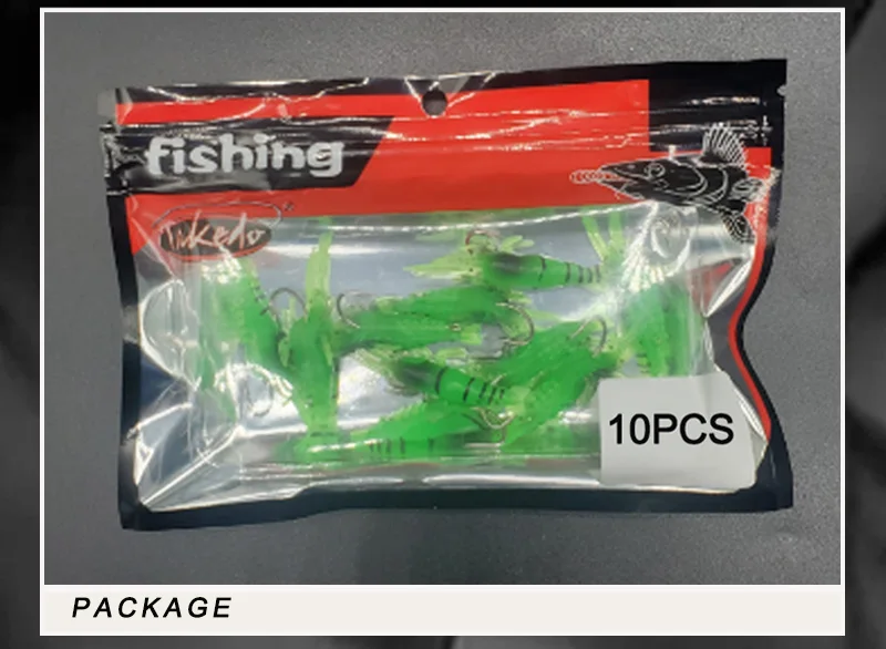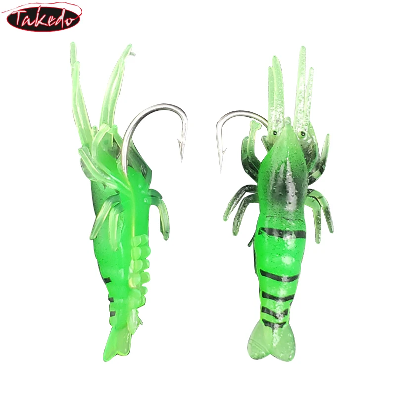 TAKEDO 10 unids/bolsa 4,5 CM 1,3G señuelo de camarón suave Artificial con gancho cebo de silicona Señuelos de Pesca de carpa Wobbler para lubina dorada