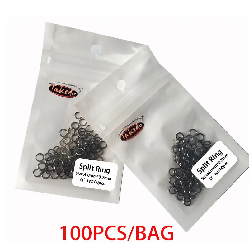 TAKEDO 100 unids/bolsa nueva llegada niquel negro Flaser doble anillo dividido accesorios de pesca de acero inoxidable conector Señuelos de pesca