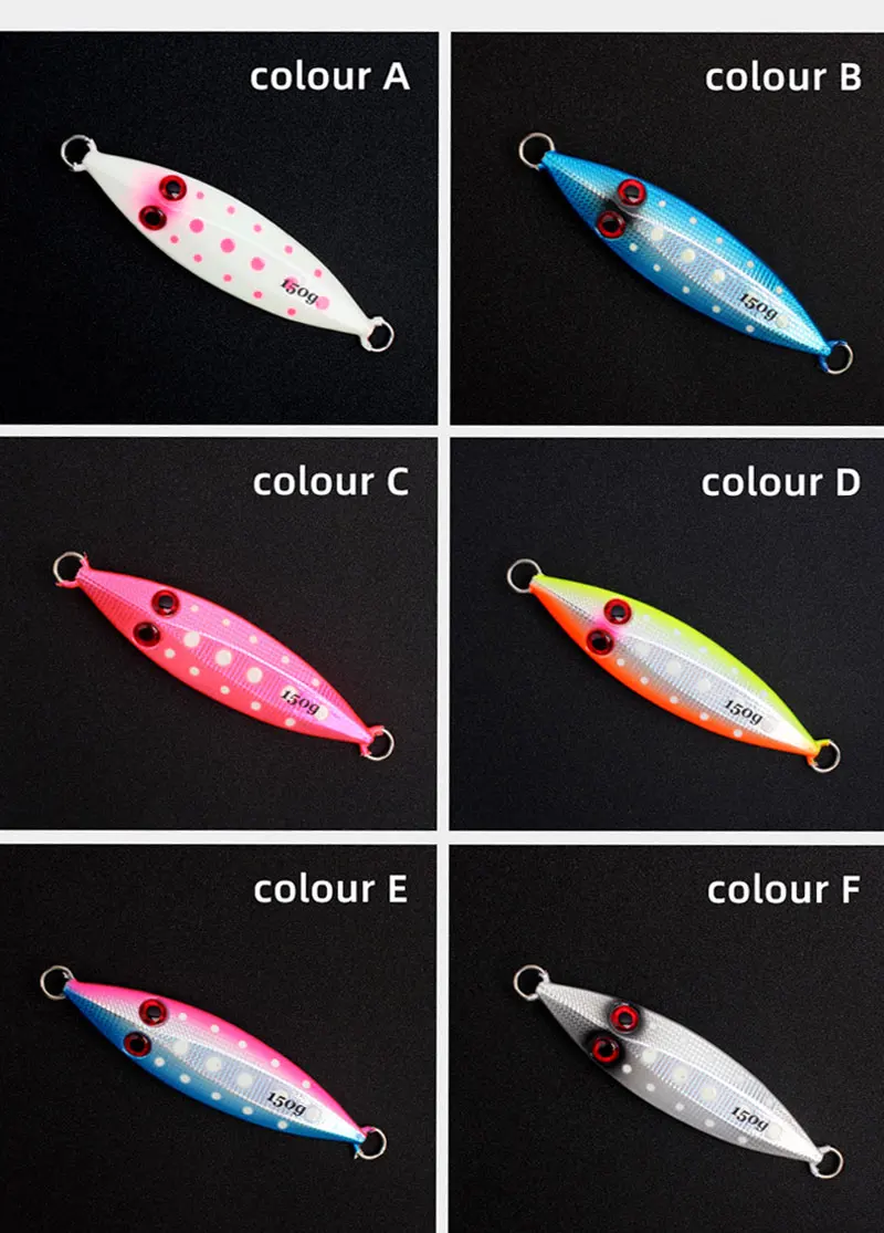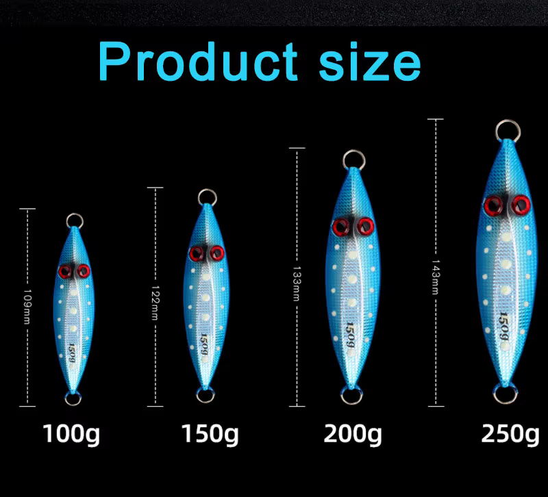 Artículo Valor Condición Impreso Material Metal Especies objetivo Trucha, Lubina, Perca, Lucio, Atún Lugar de origen China Shandong Nombre de marca TAKEDO Número de modelo MJ01 Tipo Cebo duro artificial Posición Pesca en agua dulce, pesca en roca oceánica, pesca en agua salada Tipo señuelo de pesca Cebos Midwater, cebos inferiores Nombre del producto Señuelo Jigging Peso 100g/150g/200g/250g Longitud 109mm/122mm/133mm/143mm Ojos 3D Material Plomo metal Acción Señuelo Sinnking MOQ 10 piezas