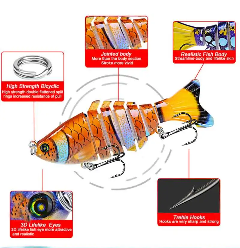 4. Made of ABS plastic material, it is sturdy and resistant to falling and knocking. The steel balls used inside have been tested by precision instruments to ensure the swimming posture of each bait.