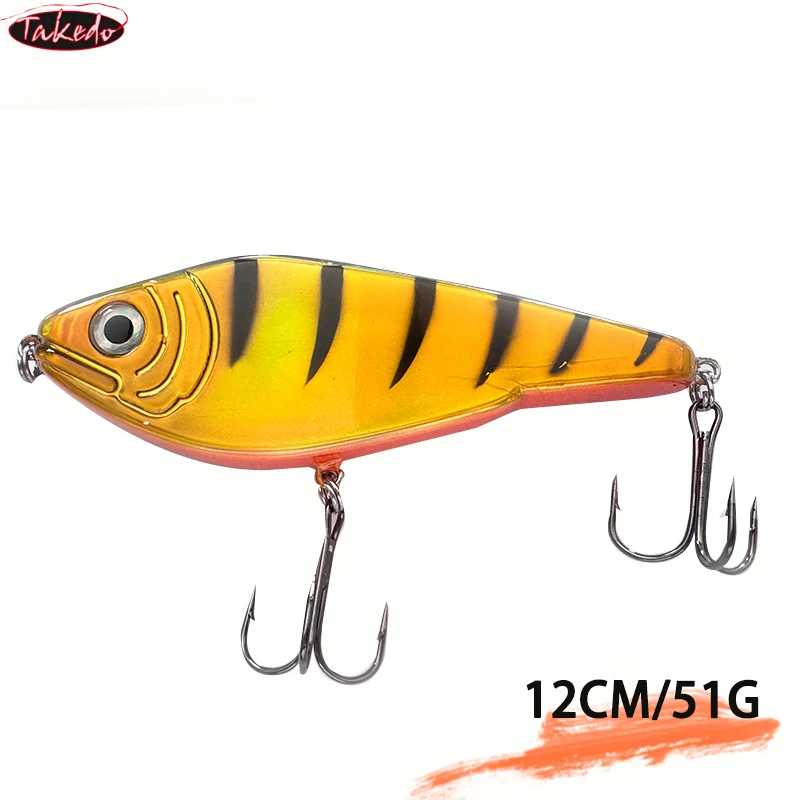 TAKEDO 12CM 51G Señuelos de pesca artificiales que se hunden Wobblers Pike Crankbait, sonajero VIB Jerk Bait