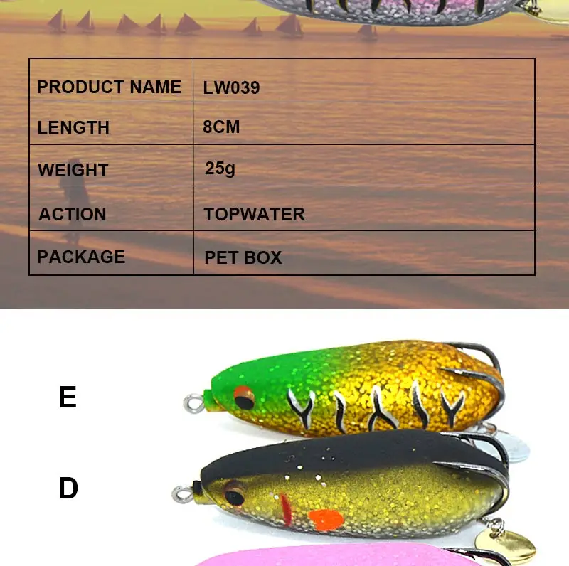 TAKEDO 2023 nuevo producto de pesca señuelo de rana Topwater LW039 8cm 25g señuelo de rana saltar Wobbers para cabeza de serpiente