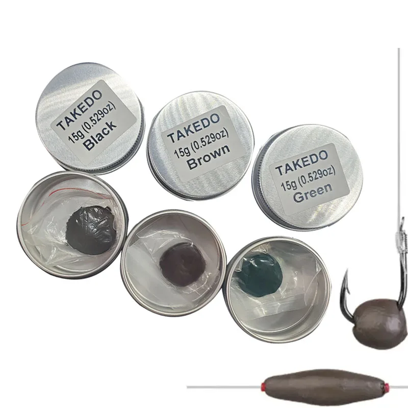 TAKEDO 3 colores 15G peso de pesca de tungsteno 1 caja DIY plomo de pesca suave masilla de tungsteno barro para equipo de pesca de carpa aparejos