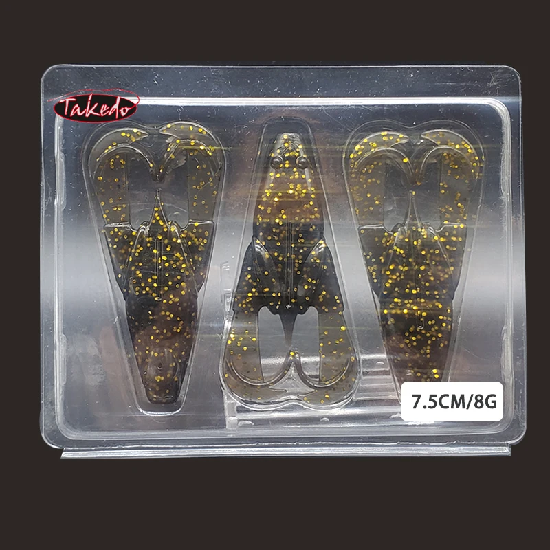 TAKEDO 3 unids/set 7,5 CM 8G Material TPR señuelo de pesca de rana cebos artificiales cebo suave con cuentas de sonido Wobblers para cabeza de serpiente