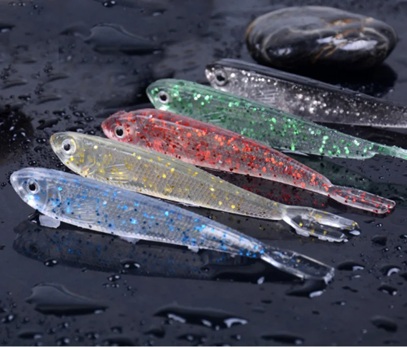 TAKEDO-3D Señuelo de cola de pez de simulación, Swimbait, cola dividida, sábalo, tiro directo, cebo blando para lubina, trucha, luccio, 8cm, 2G, 6 uds.