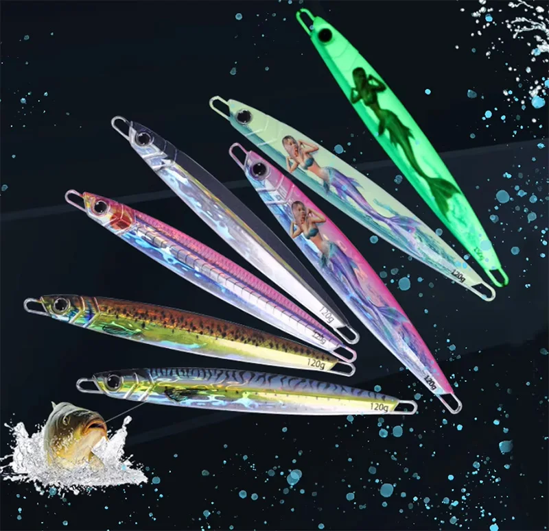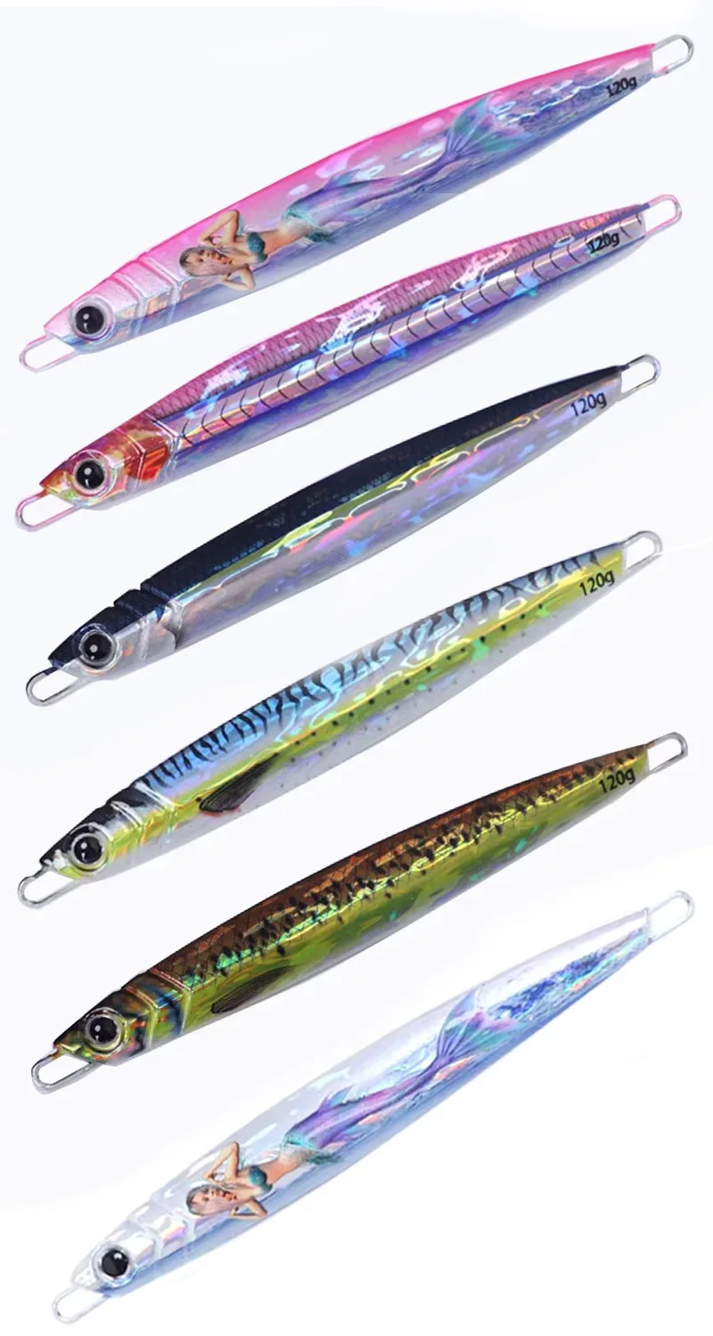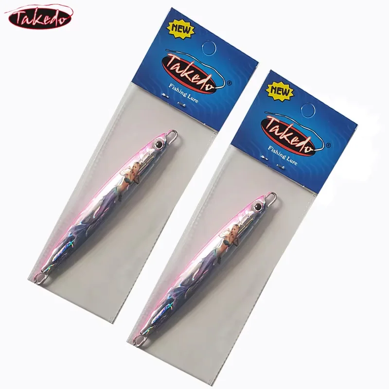 TAKEDO 40G 60G 80G 100G 120G 150G 200G Señuelos de Jigging Impresión 3D Señuelo de Pesca Plantillas de Metal Artificial Jigbaits de hundimiento rápido para atún