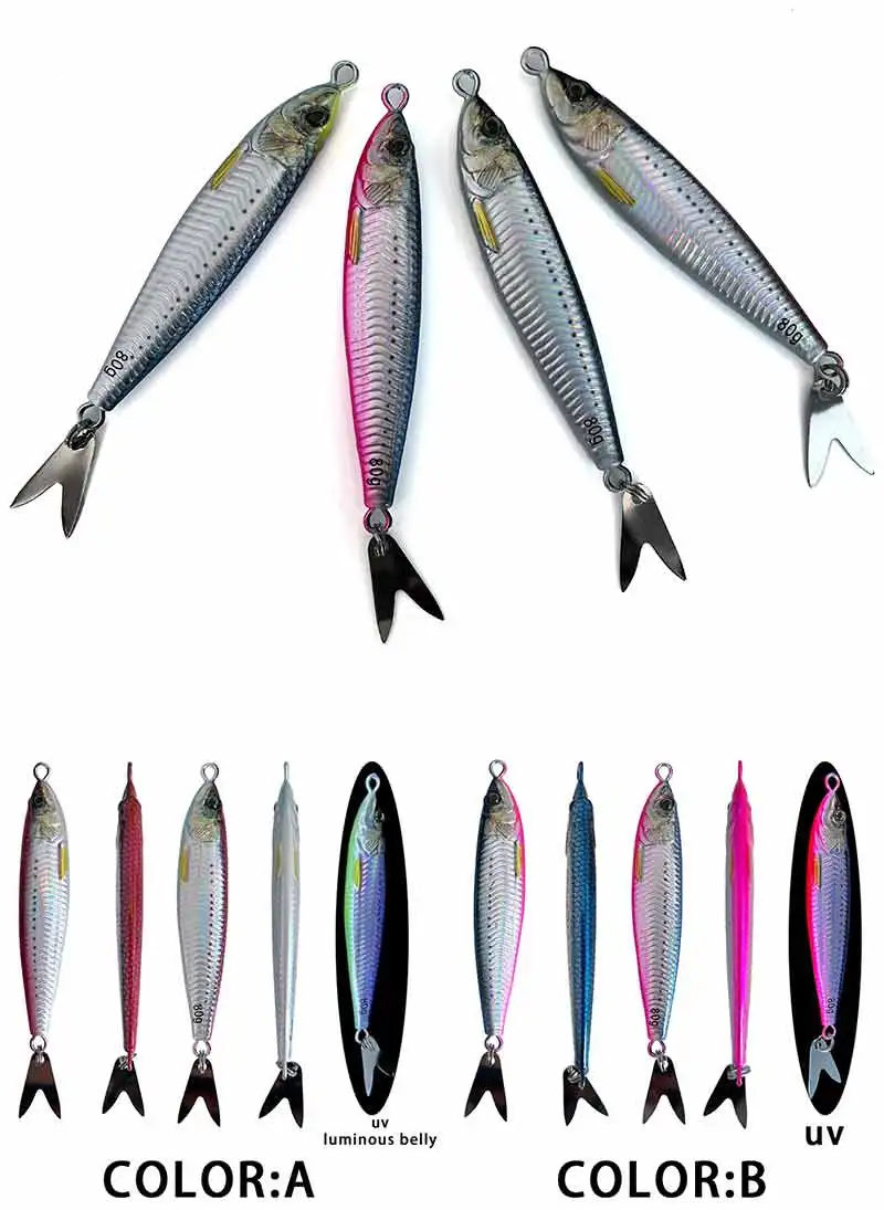 artículovalorTipoCebo duro artificialPosiciónTRESAM, río, lago, pesca en playa oceánica, pesca en barco oceánico, pesca en roca oceánica, estanque de embalse, pesca en agua dulce, pesca en roca oceánica, pesca en agua saladaCondiciónImpresoGanchosSin ganchosEspecies objetivoCarpa, trucha, lubina, pez espino, marlin, pez de agua salada, tiburón, pargo, orada, perca, lucio, zander, bluegill, bagre, bacalao, carpa cruciana, pez de agua dulce, caballa, salmón, lubina, cabeza de acero, pez sol, tilapia, Atún, DaceNombre de la marcaTAKEDONúmero de modeloJY01Tipo de señuelo de pescaCebos de superficie, cebos de agua media, cebos de fondoNombre del productoSeñuelo de jigging de metalMaterialMetalPeso40G 60G 80GLongitud82MM 90MM 103MMPaqueteBOLSA de PVCAcciónSeñuelo que se hundeMOQ10 piezas