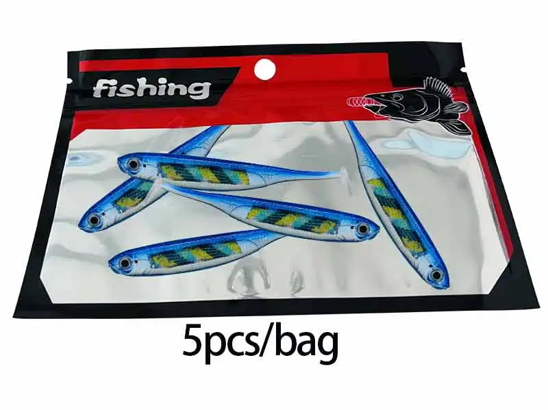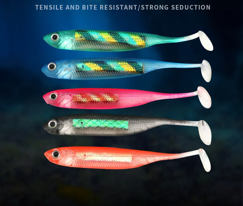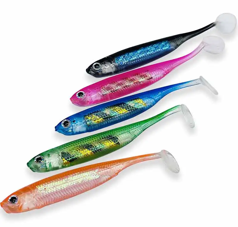 TAKEDO 5 unids/bolsa 7,5 CM 2,2G PVC cola en T Arco Iris señuelo suave agitador delgado cebo suave gusano Señuelos de pesca Wobber para lubina trucha Pike señuelo