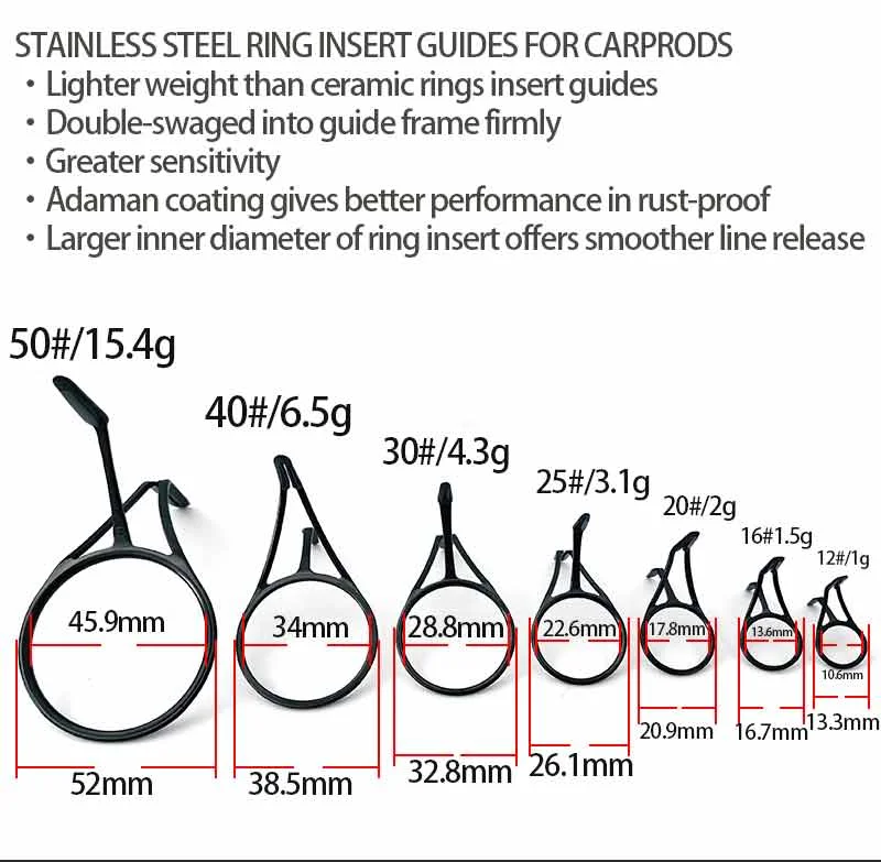 · Se aplica a las guías de anillo D para carpas, comederos y cañas de pescar con señuelos.