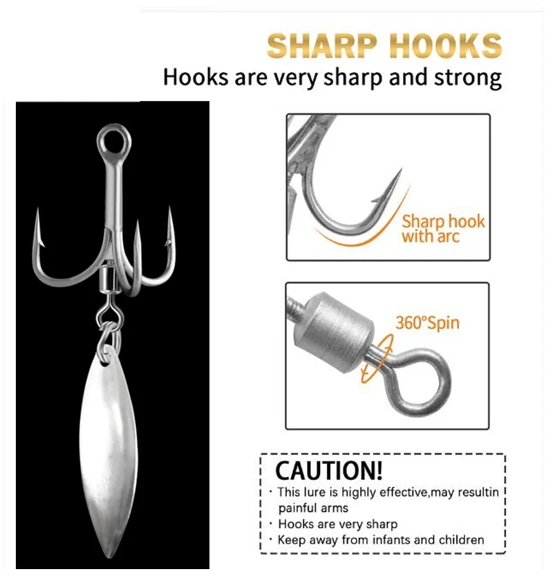 TAKEDO-Anzuelo triple de acero al carbono con cuchara, anzuelo giratorio de ayuda para cebo para pesca, 2 # , 4 # , 6 # , 8 # , 10 # , 4 unidades/caja