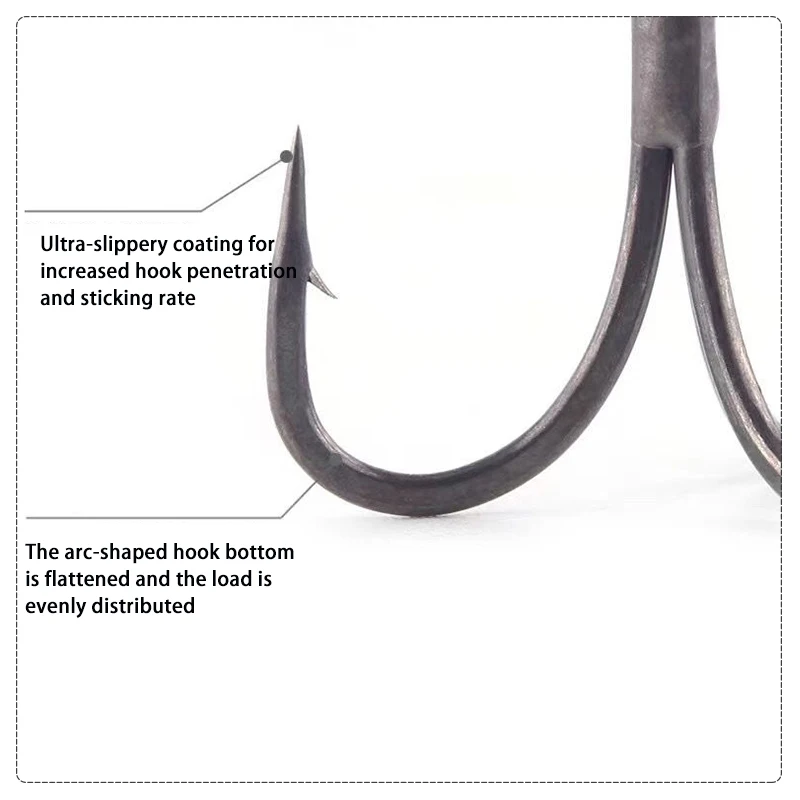 La punta del gancho está ligeramente enderezada para mejorar la tasa de conexión.