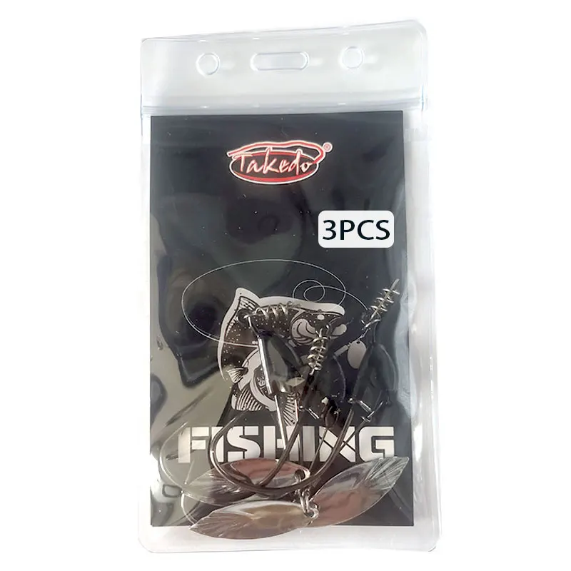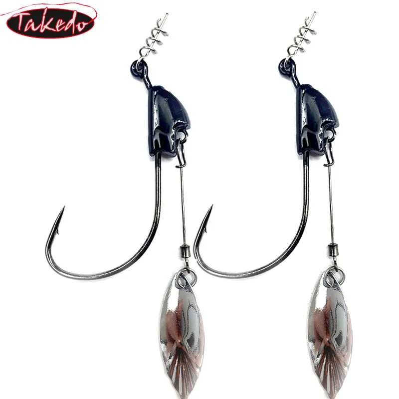 TAKEDO BY02 anzuelos con cabeza de anzuelo, anzuelo de pesca con cuchara, 3 unids/bolsa, anzuelo de gusano con manivela, anzuelos suaves ponderados, todo para pescar
