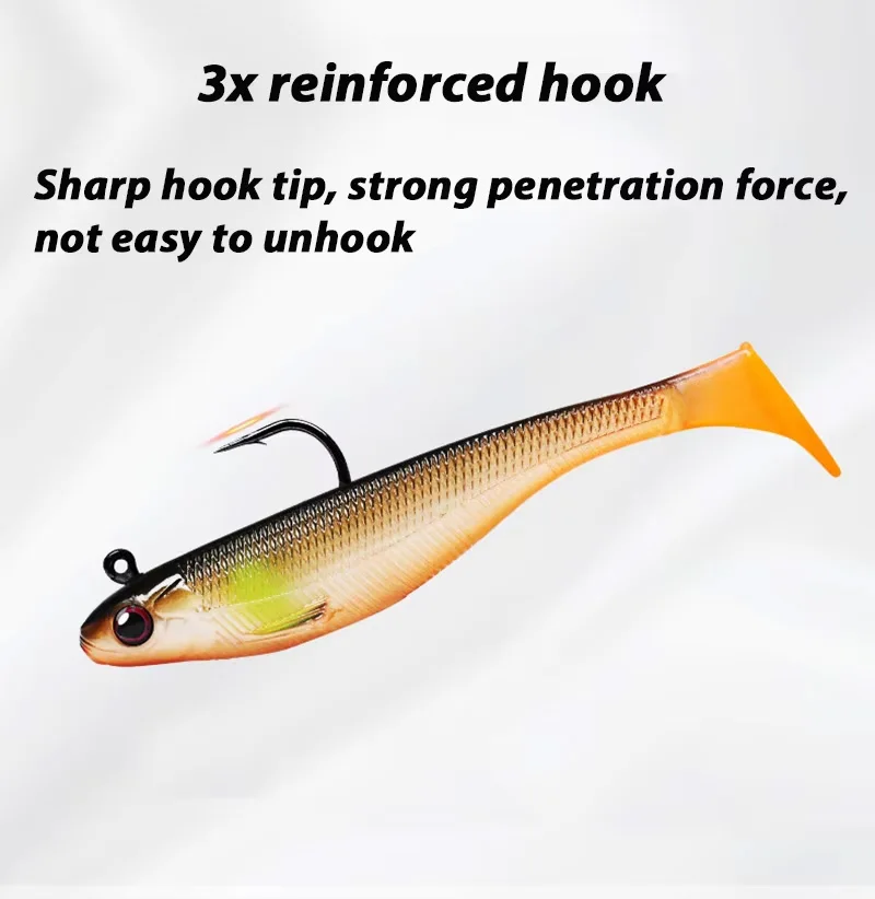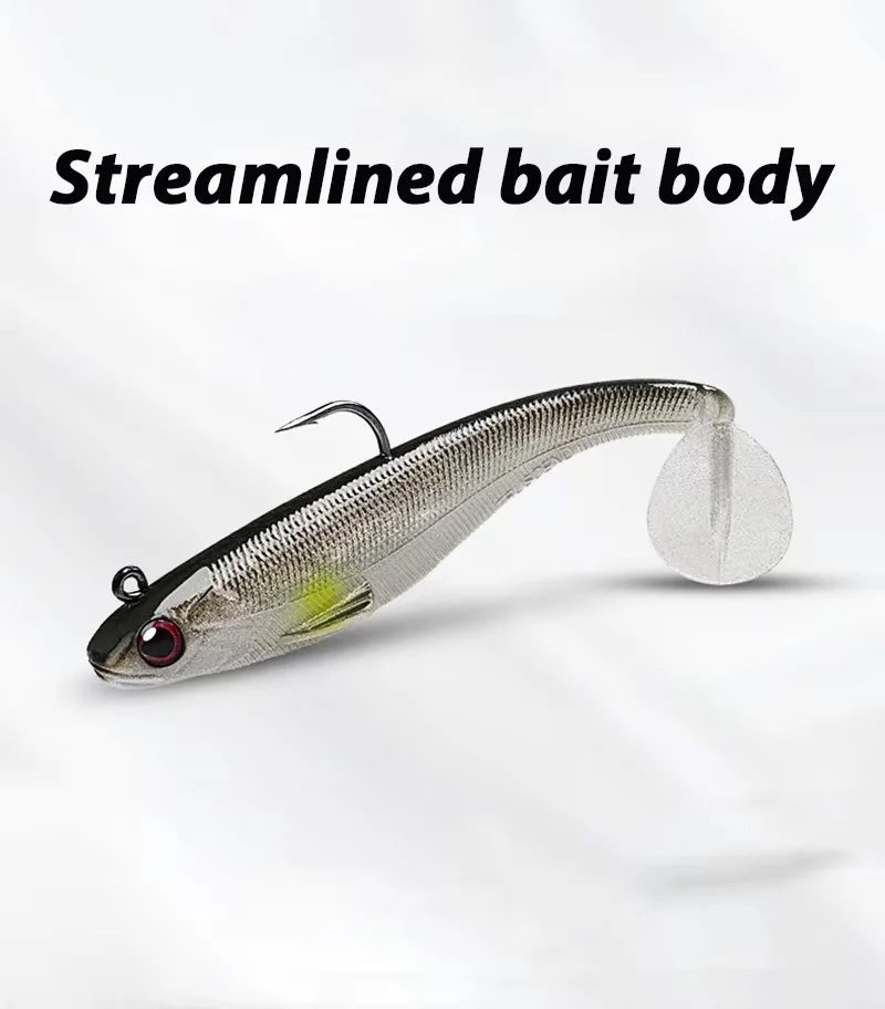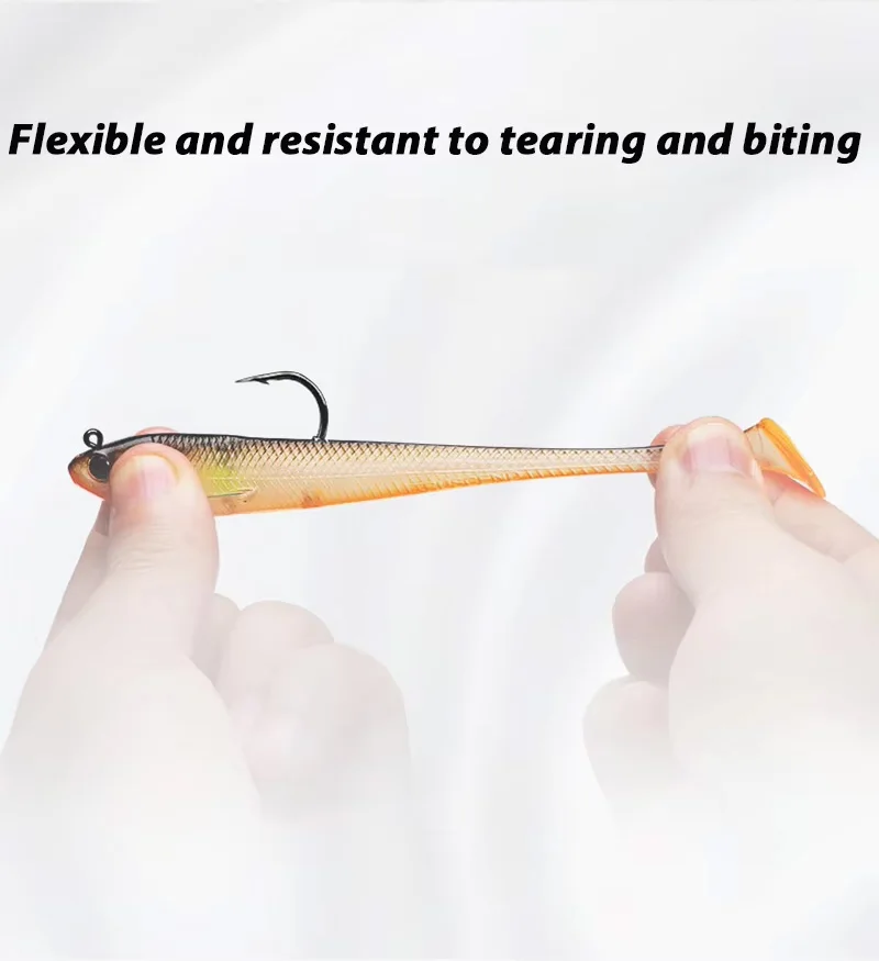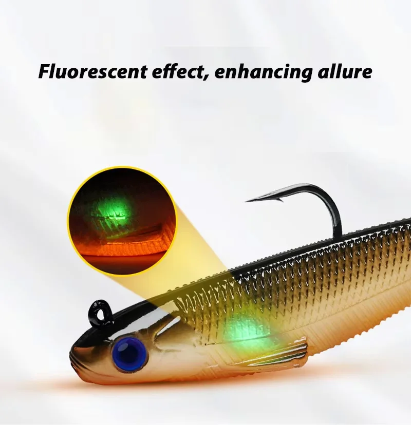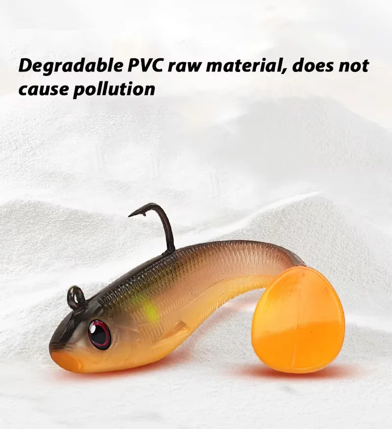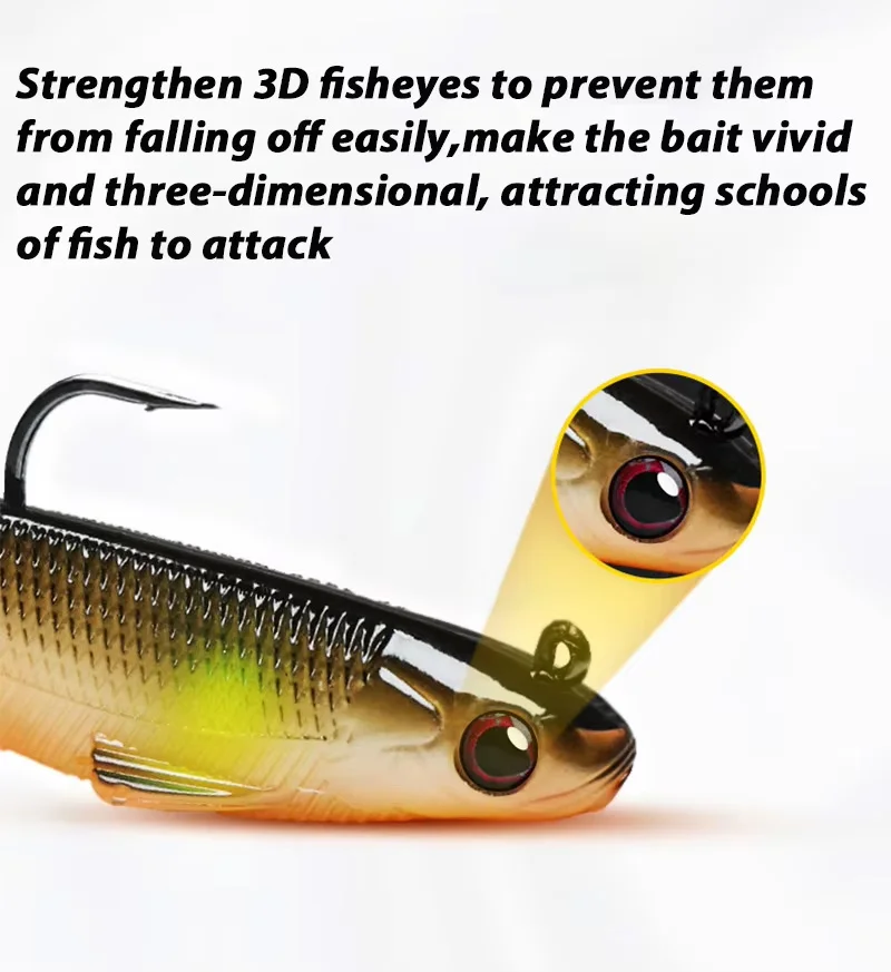 TAKEDO BZ01 LIVE SHAD plantilla de pesca señuelo Jig pez plomo cabeza de plomo con cola en forma de T PVC señuelos blandos señuelo de pesca ojos 3D