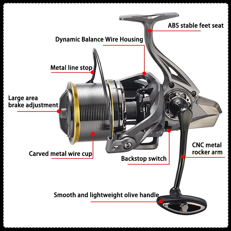 Nota: Los diferentes tamaños de carretes de pesca en las opciones se venden por separado del carrete de pesca