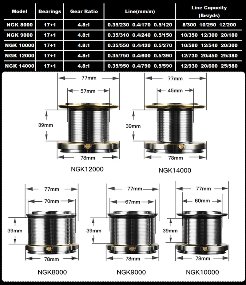 Carrete de aleación de aluminio forjado en diferentes colores; arandelas de freno SUS y carbono para superpotencia; excelente línea con sistema de eje helicoidal;