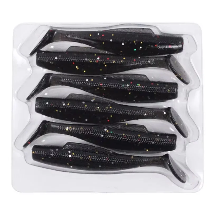TAKEDO-Cebo flotante de Material TPR, señuelo de insectos blandos, Wobblers, aparejos de pesca, cola en T, Wrom, para lubina de mar, 8CM, 3,5G, 6 unids/lote por bolsa