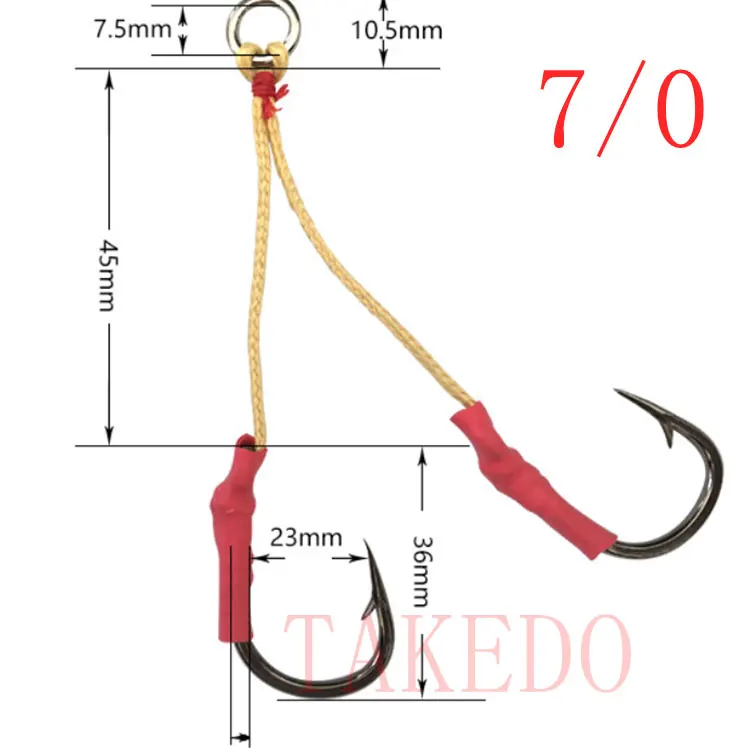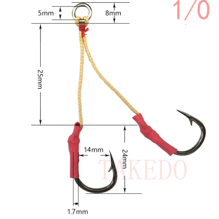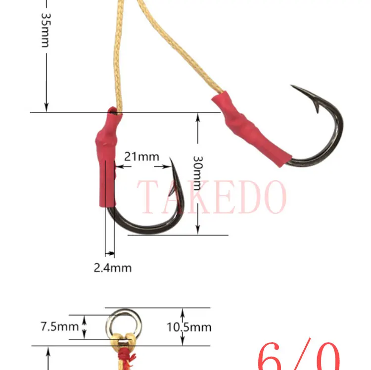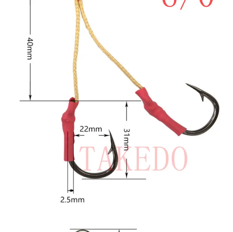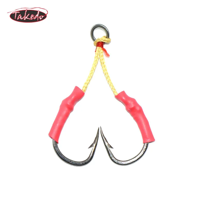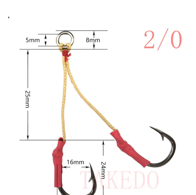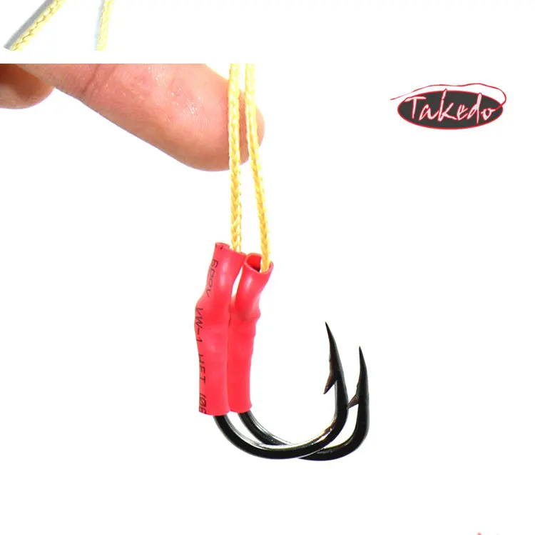 TAKEDO-Hanzuelo de ayuda para Jigging de acero al carbono, ganchos dobles con línea de PE, gancho de asistencia de anillo sólido, 2PRS/bolsa, 10827