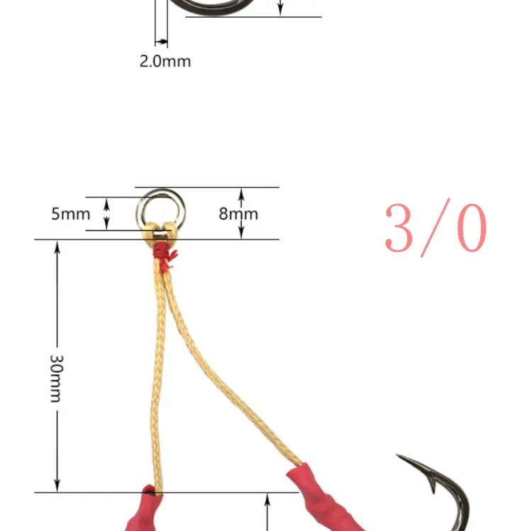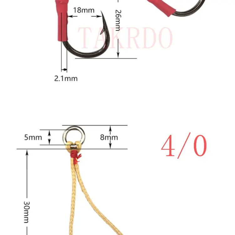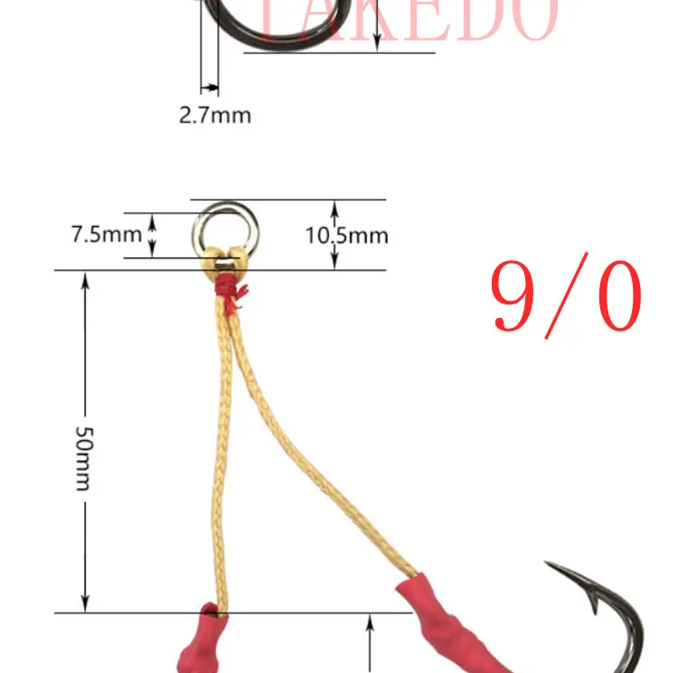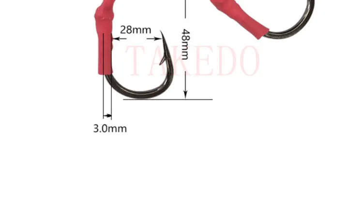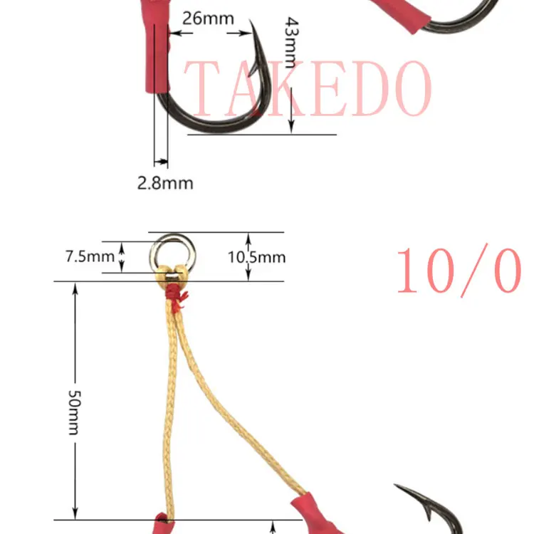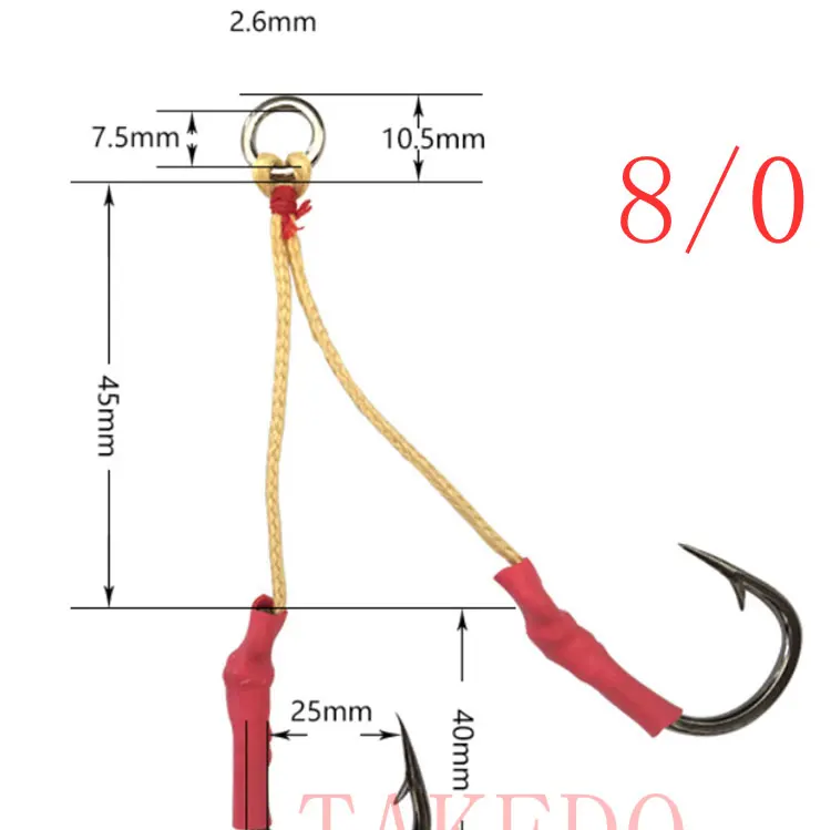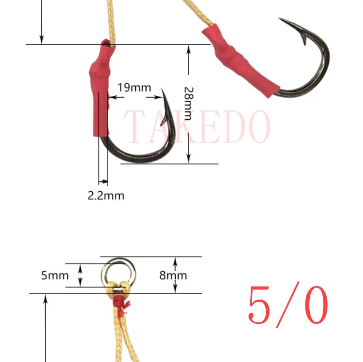 TAKEDO-Hanzuelo de ayuda para Jigging de acero al carbono, ganchos dobles con línea de PE, gancho de asistencia de anillo sólido, 2PRS/bolsa, 10827