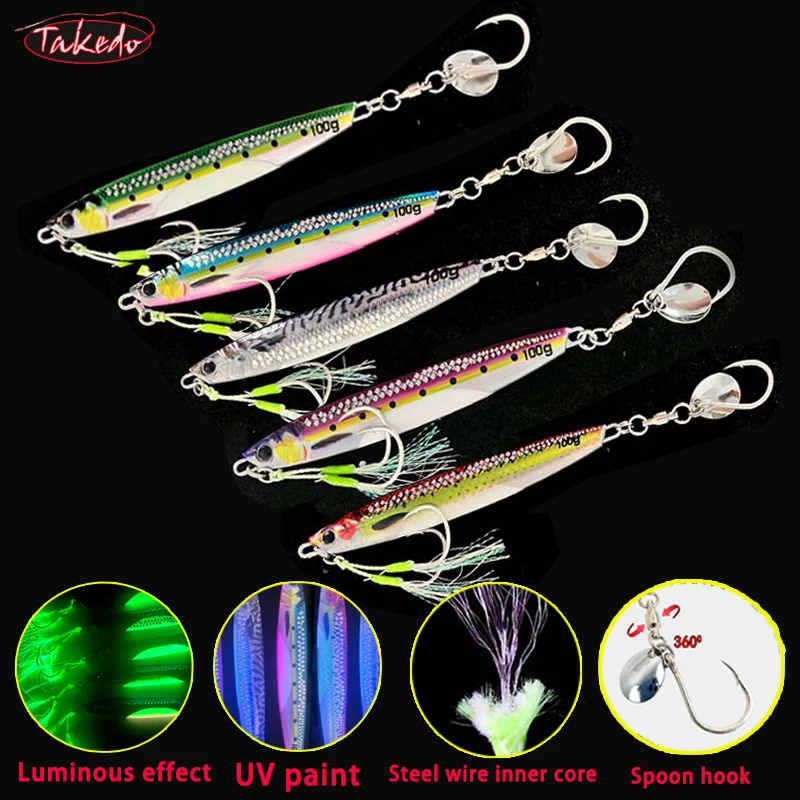 TAKEDO HG02 40G 60G 80G 100G 120G 150G 180G 200G Señuelos de Jigging Impresión 3D Señuelo de Pesca Plantillas de Metal Artificial Jigbaits de hundimiento rápido