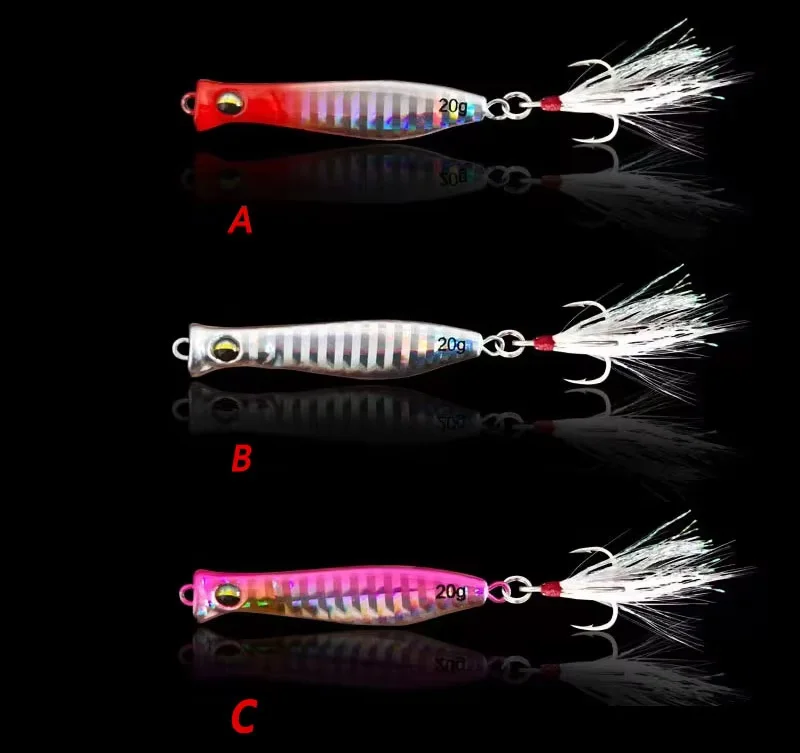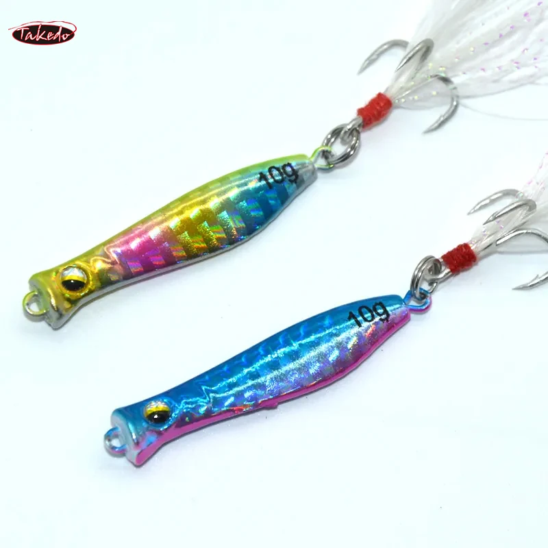 TAKEDO HG29 pesca en el mar cuchara Popper de Metal cebo Artificial anzuelo de pluma Triple reforzado señuelo de Jigging de plomo para señuelo de lubina