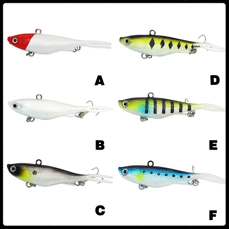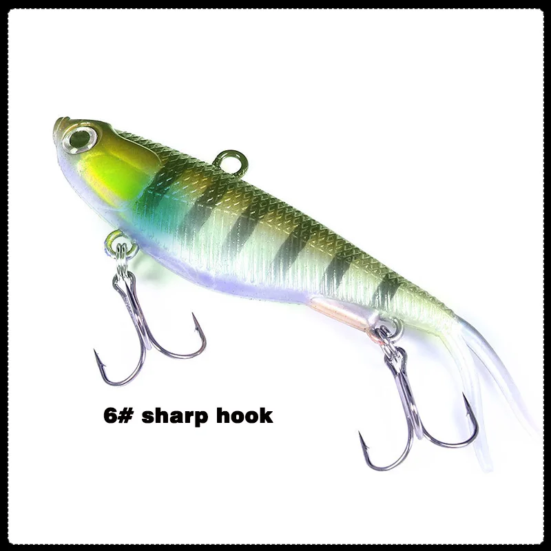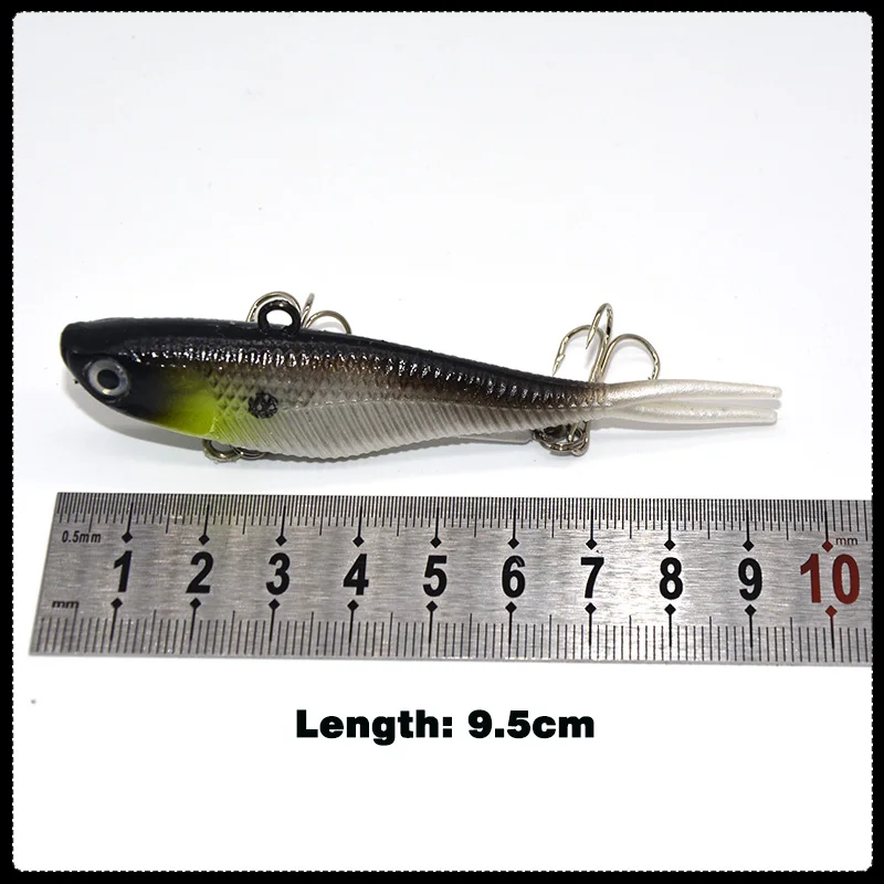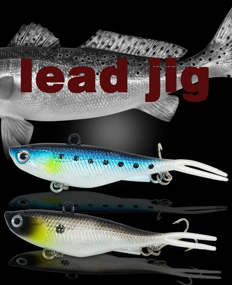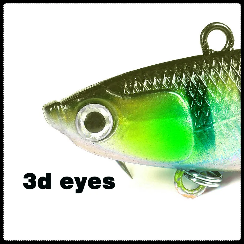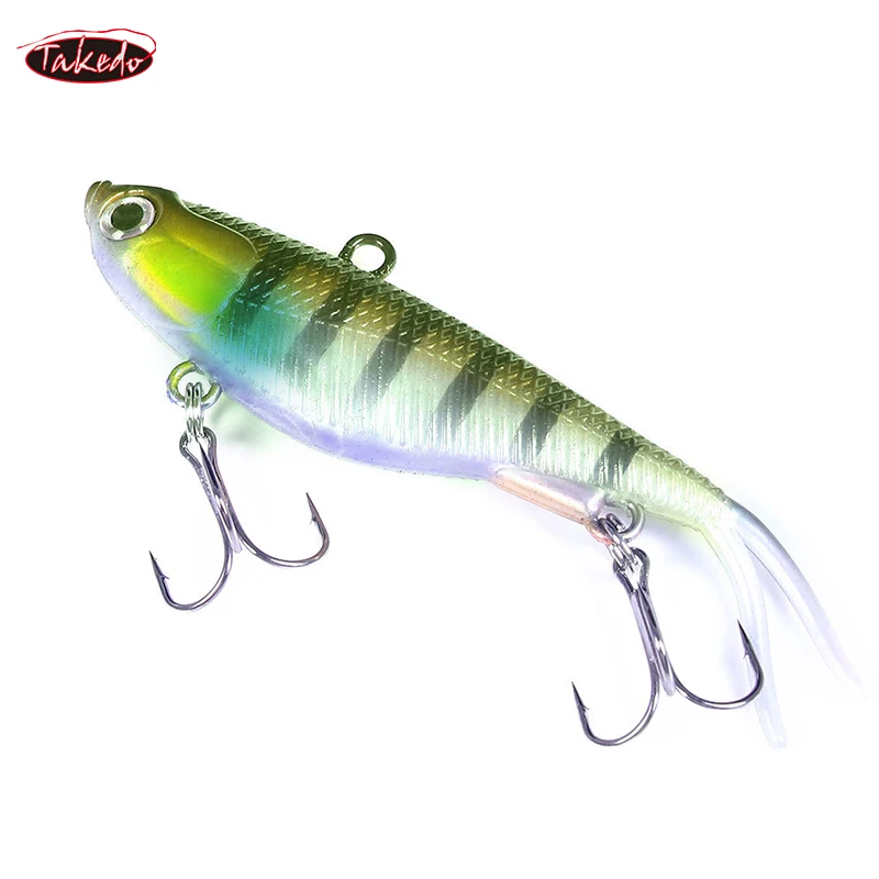 TAKEDO HJ11 cebo de PVC suave VIB cabeza de plantilla de Metal señuelos para peces aparejos de pesca de lubina con anzuelo triple hundimiento señuelo de plantilla suave