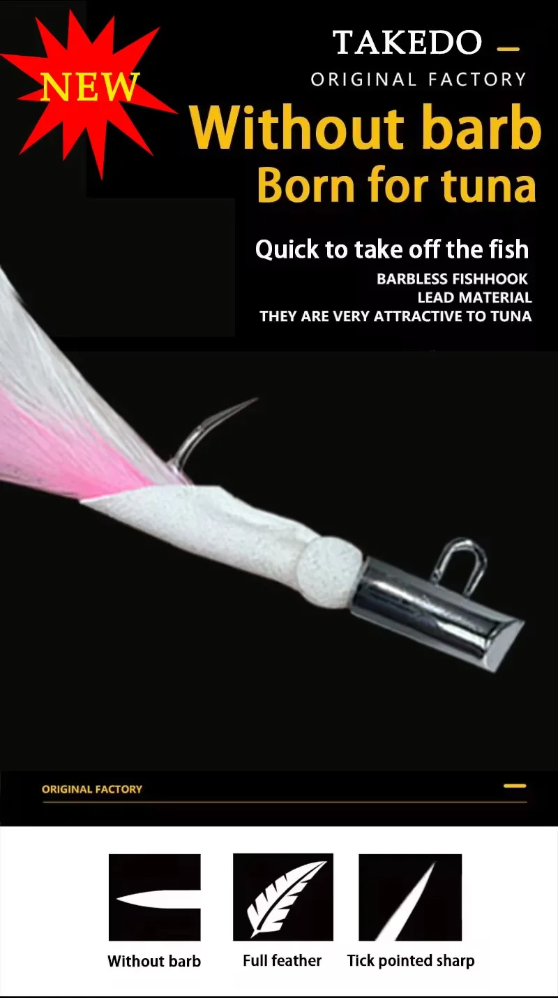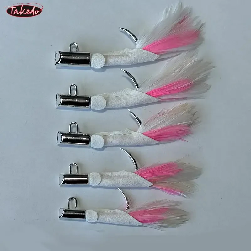 TAKEDO HT01 2.0 # 2.2 # 2.5 # 2.8 # 3.0 # Anzuelo de piel de ciervo galvanizado para pesca en el mar, anzuelo de plumas para Jigging, juego grande, anzuelo de atún y tiburón