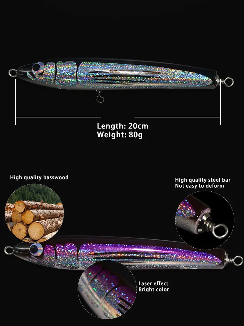 TAKEDO JY58 cebo de tilo, señuelos Topwater de 200MM, 80G, señuelo tipo lápiz de madera, Wobblers de fundición larga, señuelo para curricán de atún, pesca en barco