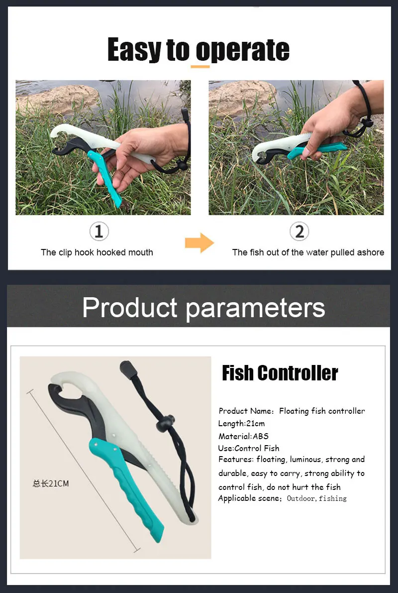 TAKEDO KY01 21CM portátil flotante luminosa agarre de pesca plástico controlador de peces dispositivo alicates herramienta de pesca nocturna aparejos todo para pescar