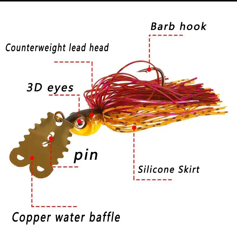 TAKEDO LD10 señuelo hoja cebo de Metal con falda de goma Spinnerbait Jig señuelo sin malezas pesca de lubina