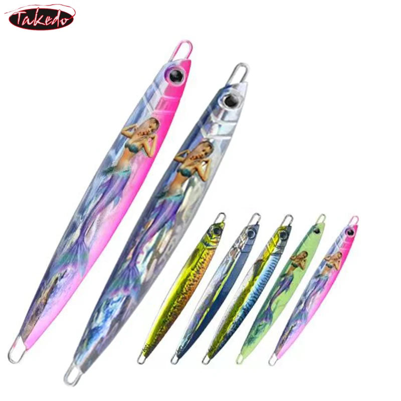 TAKEDO LS02 señuelo de pesca Jigging con impresión 3D, Señuelos de Pesca de hundimiento rápido, Señuelos de Pesca de Mar, Señuelos de fundición luminosos de Metal para atún, caballa española