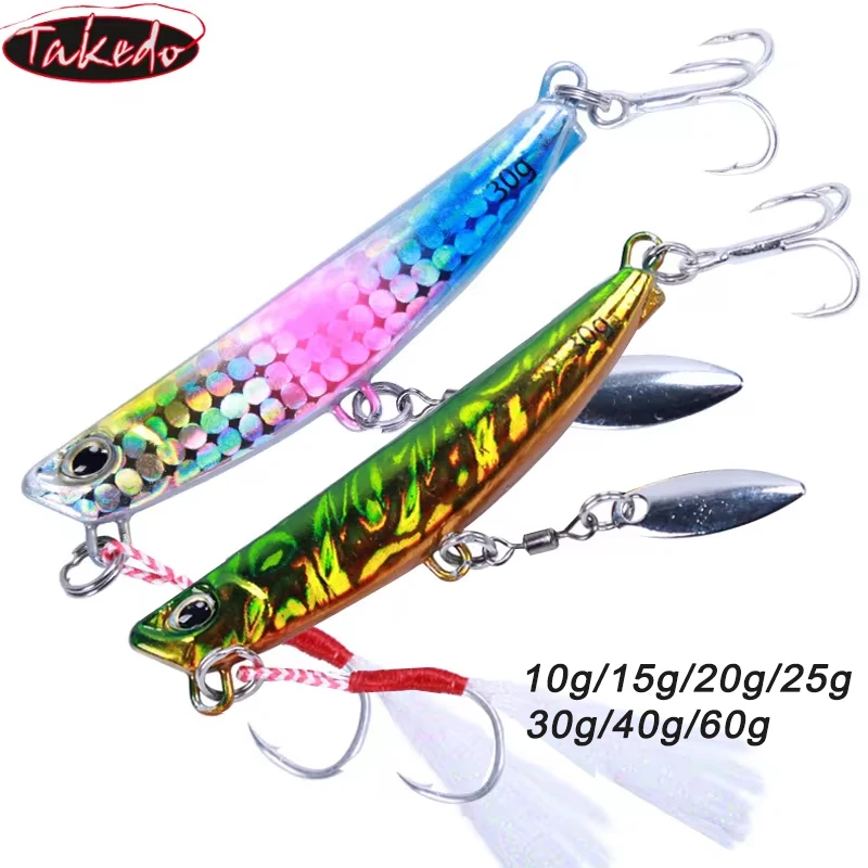 TAKEDO LS06 pesca en el mar hundimiento señuelo de Metal fundido Jigging señuelo con ganchos y cuchara giratoria americana Wobbler para Lucio Bass