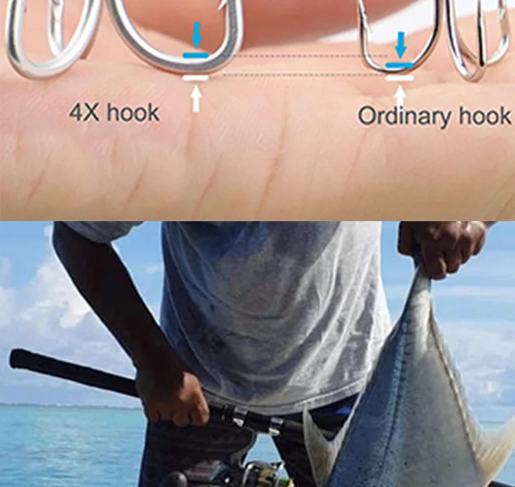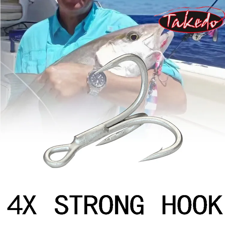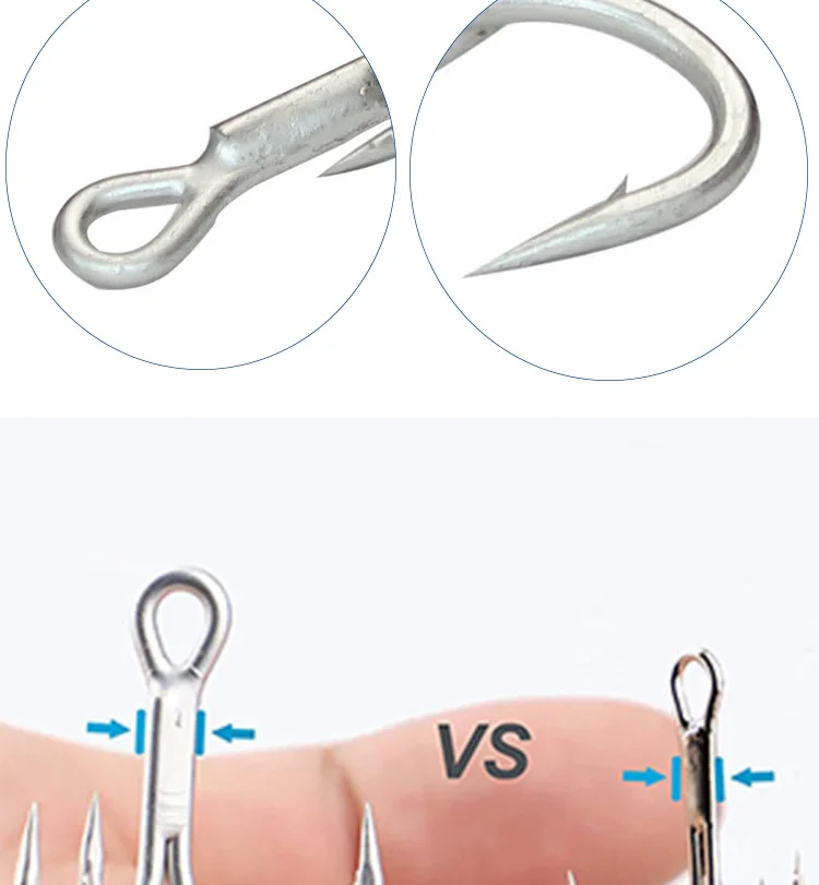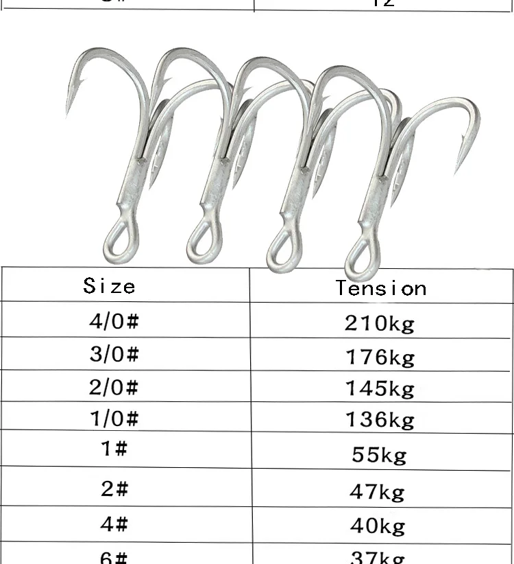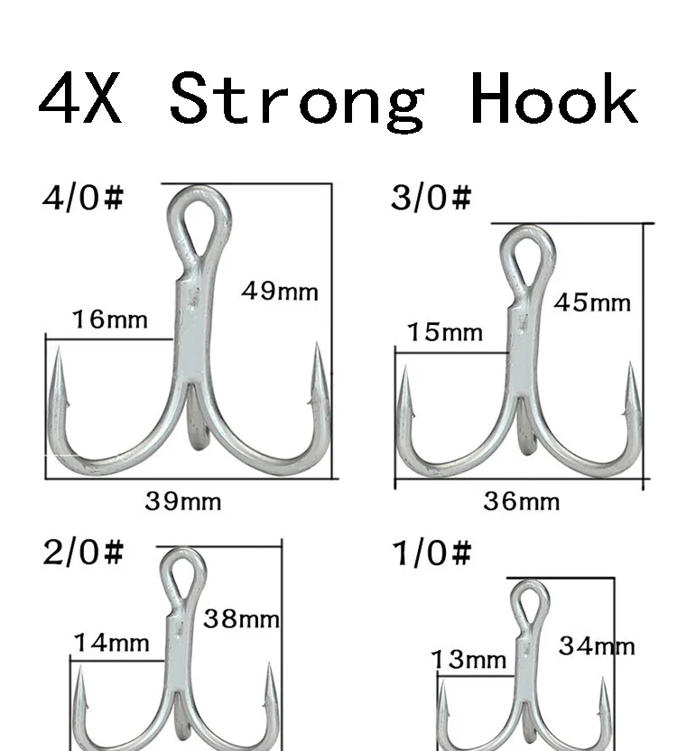 Afilado fino: El enorme anzuelo triple 4X presenta la finura de la punta afilada con durabilidad, lo suficientemente fuerte como para mantenerse firmemente en la boca de un pez grande, sin escapes.