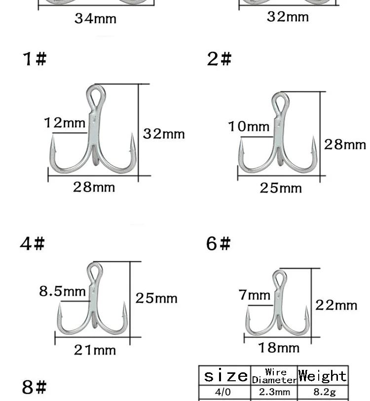 4 anzuelos triples fuertes: construido para ser de gran calibre y anzuelo de gran tamaño para luchar por la trucha de agua salada, el bagre, el pez rey y la lucioperca, casi inflexible e irrompible.