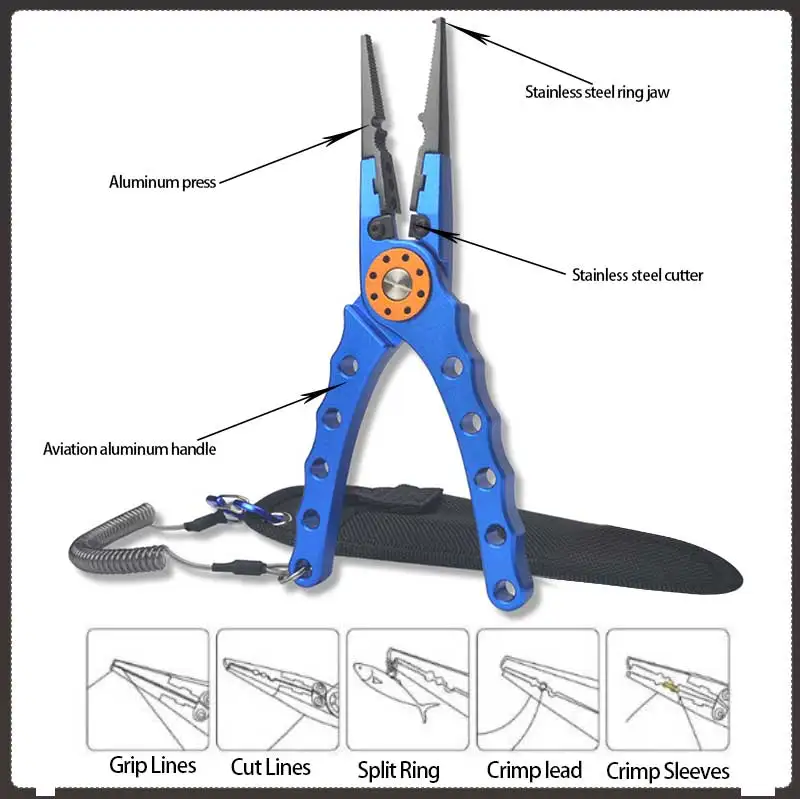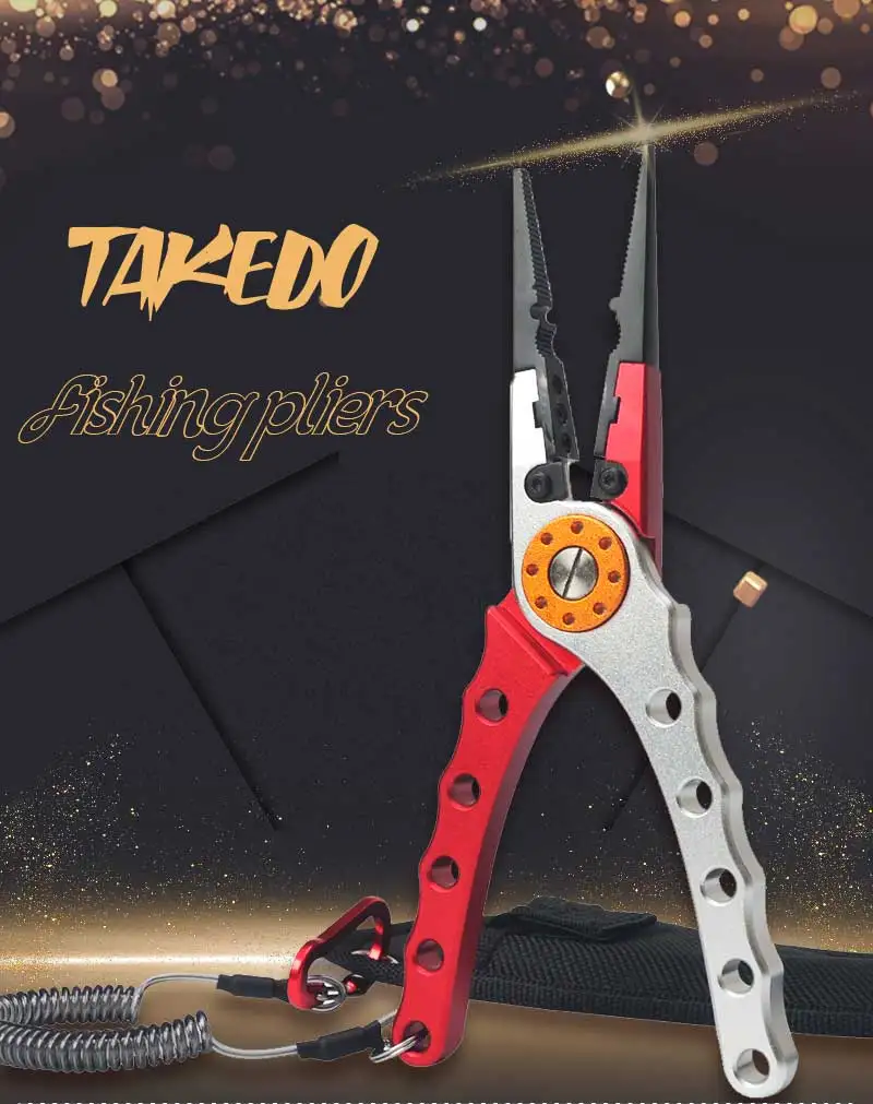 TAKEDO-manga de pesca multifunción de acero inoxidable, alicates de pesca de aleación de aluminio, herramienta de pesca, tijeras, removedor de anzuelos