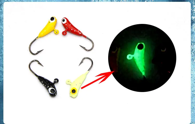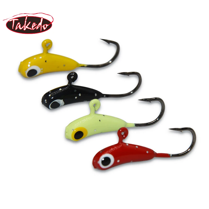 TAKEDO Mini anzuelo con cabeza de anzuelo de plomo para señuelo de hielo, plantilla luminosa para invierno, plantillas de pesca, 24mm, 1,6g, 4 unids/bolsa