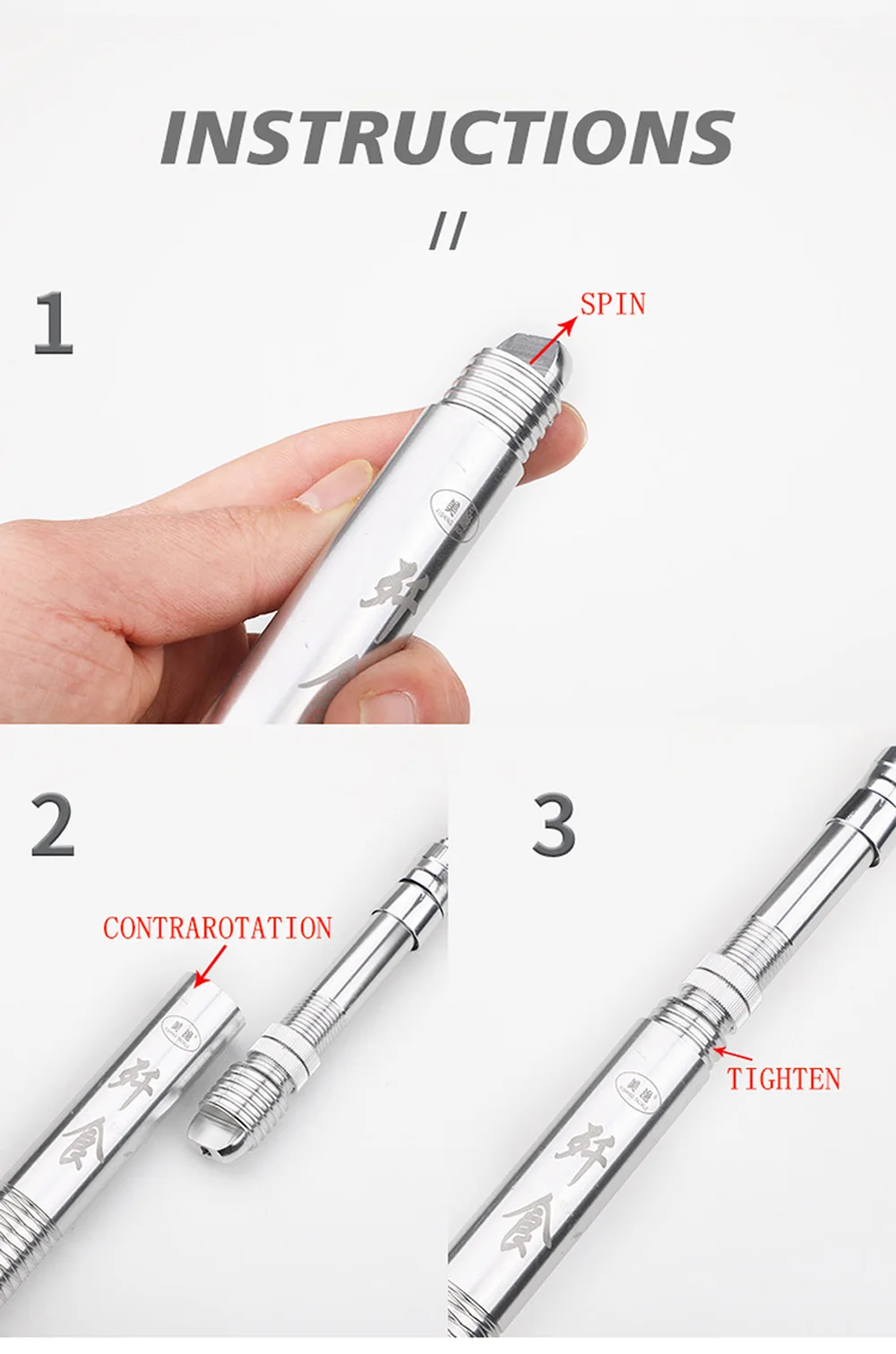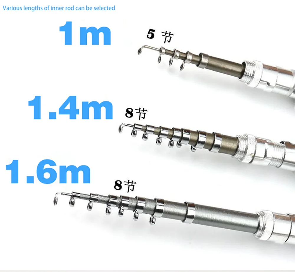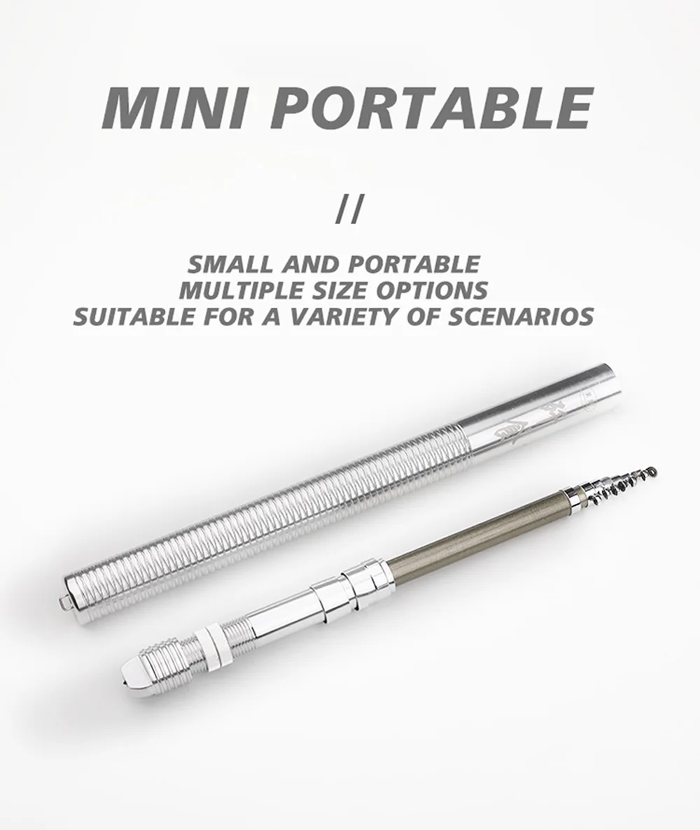 Artículo n. °:MY-J10Longitud100cmMaterialAleación de aluminioLongitud reducida24cmPeso270gNuevo producto en venta: herramientas de pesca portátiles de nueva construcción para acampar al aire libre, utilizando un tubo grueso roscado de aleación de aluminio CNC totalmente metálico, asegúrese de que sea lo suficientemente duradero, todo el cuerpo está hecho de aleación de aluminio espacial, mecanizado de precisión de control numérico CNC, ¡se mejora la textura!