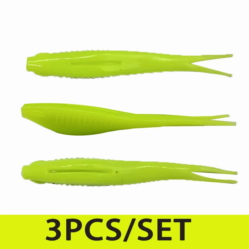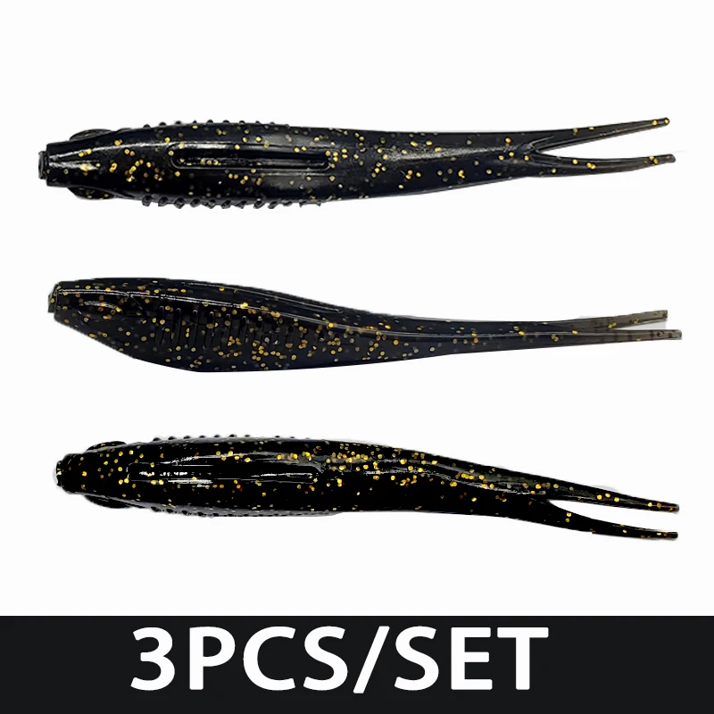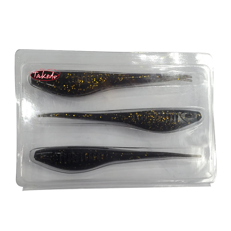 TAKEDO MY18 3 unids/set 12,5 CM 11,5G señuelo de pesca de girino TPR cebo suave cebos de cola bifurcada Wobbers para lubina bagre