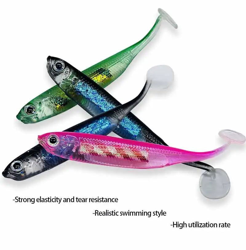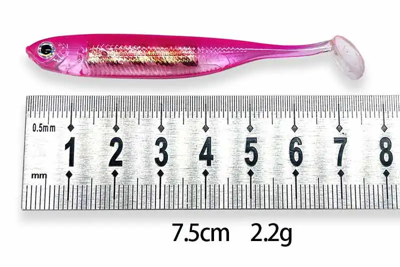 TAKEDO, recién llegado, JJ01, 7,5 CM, 2,2G, PVC, cola en T, agitador delgado, arcoíris, cebos blandos para peces, Señuelos de Pesca, lubina, trucha, Lucio