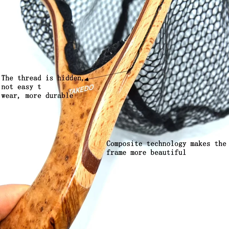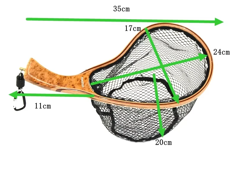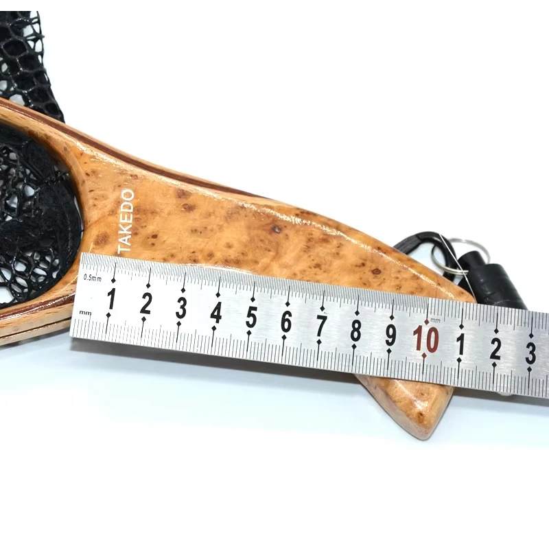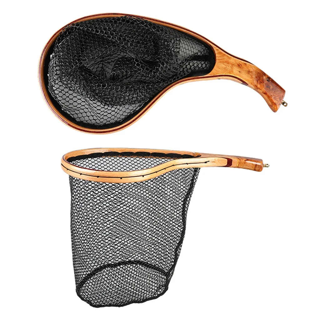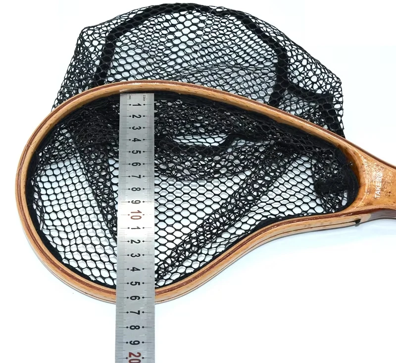 TAKEDO Redes de pesca con mosca Red de aterrizaje de corriente de mosca Red de trucha de malla de goma suave Mango de madera impermeable Red de captura y liberación