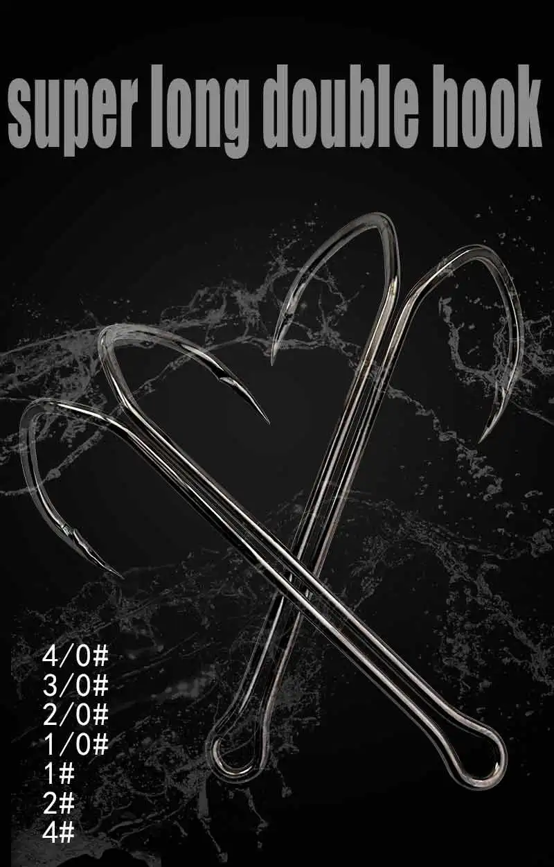 TAKEDO SDL-38BC Gancho Doble 6 # -4/0 anzuelo de pesca de níquel negro, anzuelo de pesca de caña larga, anzuelos de pesca de acero al carbono para señuelo de rana