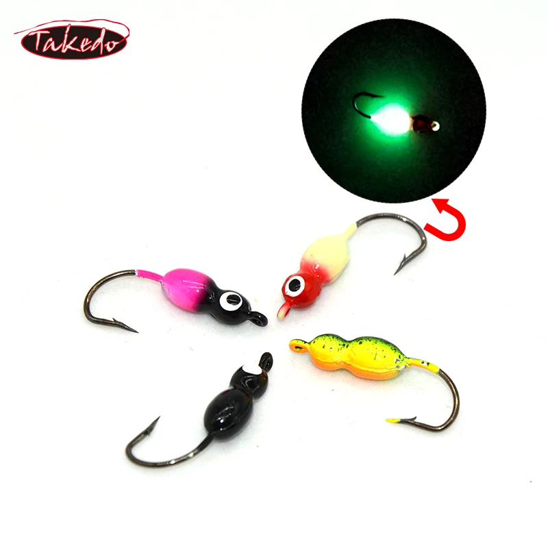 TAKEDO-señuelo luminoso para pesca en hielo, cebo Artificial, Mini señuelo de Jigging para trucha, lubina, invierno, 4 Uds., SP18