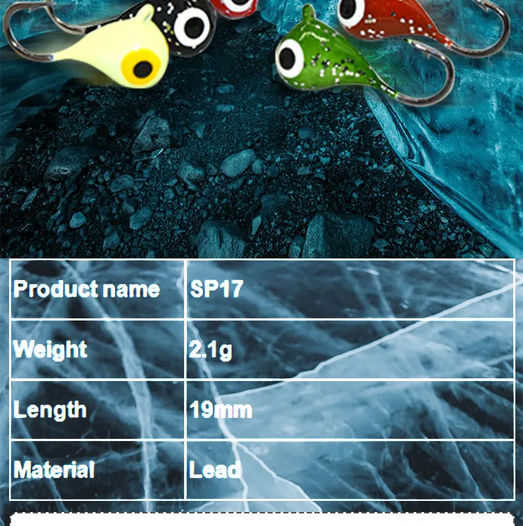 TAKEDO-señuelo luminoso para pesca en hielo, Crankbaits, anzuelo con cabeza de anzuelo de Metal, señuelo para trucha, invierno, SP17, 19mm, 2,1G, 5 uds.