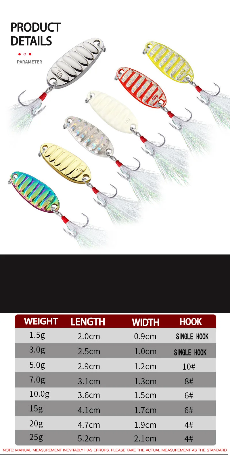 TAKEDO-señuelo de pesca con cuchara electrochapada, 1,5-25G, cuchara giratoria, cebo giratorio con ganchos, plantilla, señuelo giratorio para Lucio
