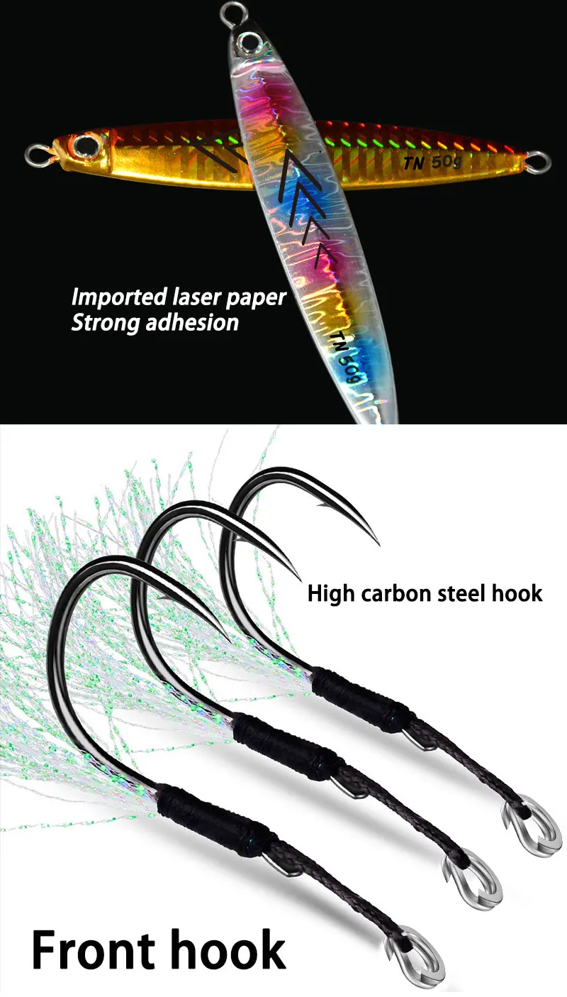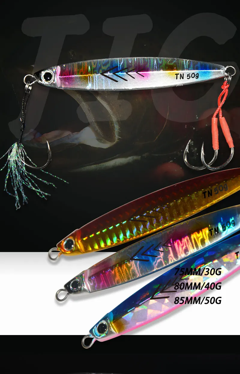 TAKEDO-señuelo de pesca Vertical de Metal, cebo Artificial con ojos 3D, anzuelos de asistencia, 30g, 40g, 50g, TN02