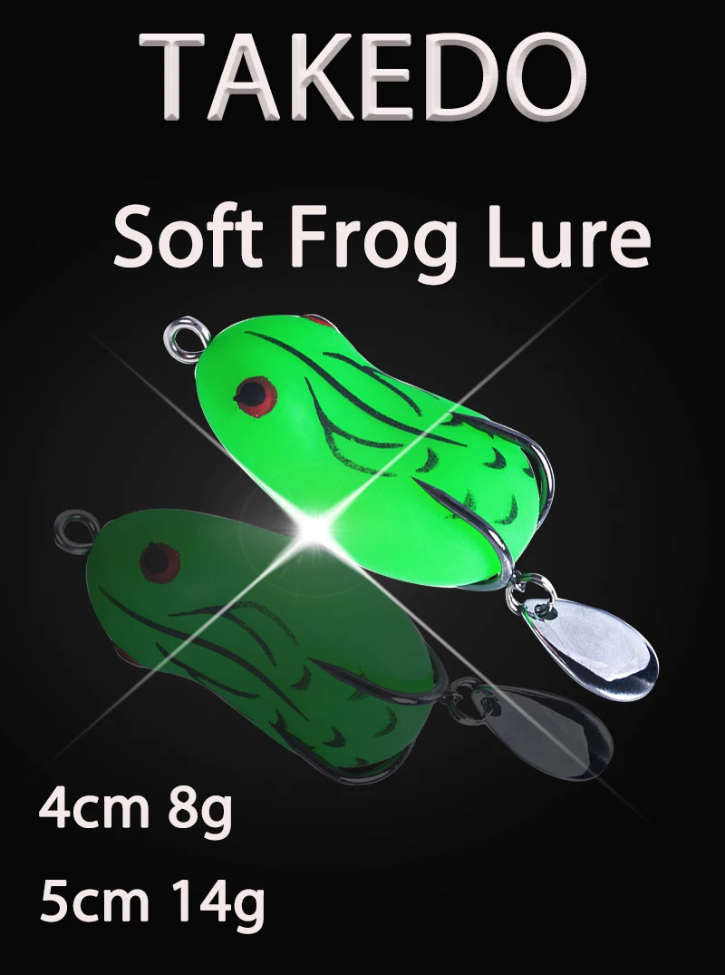 TAKEDO-Señuelos de pesca de rana de cebo artificial, cebo biónico, suave, Topwater, Jump Frog, HJ21, 4cm, 8g, 5G, 14g