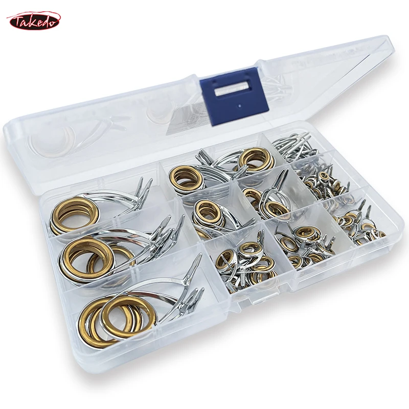 TAKEDO TN75-1 5 Juegos de guía de caña de pescar mediana giratoria soporte de acero inoxidable anillos de cerámica accesorios de caña de pescar DIY