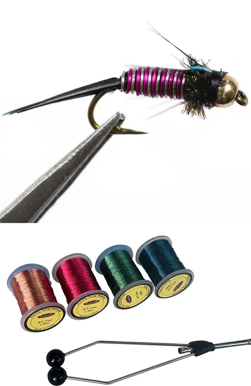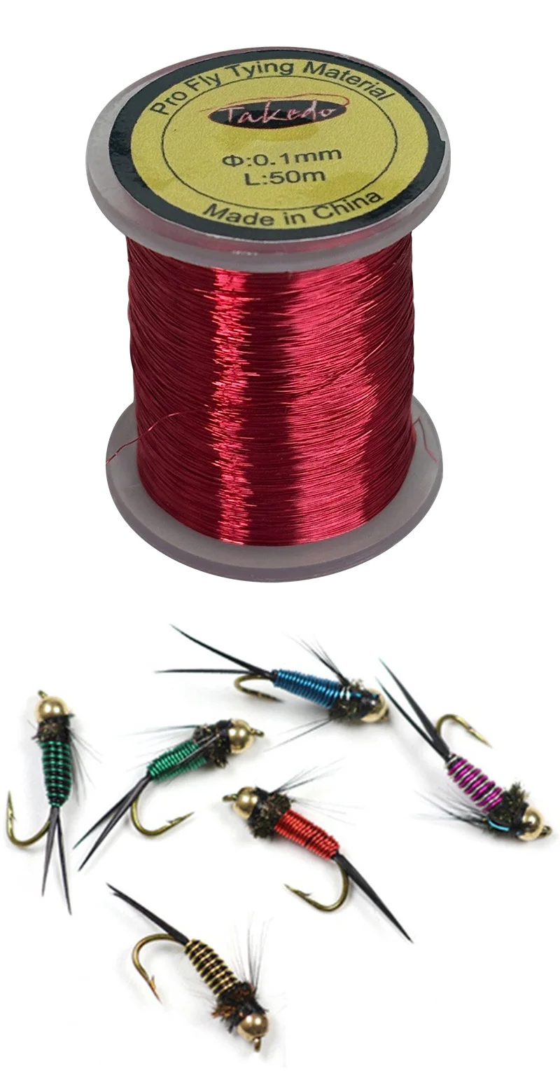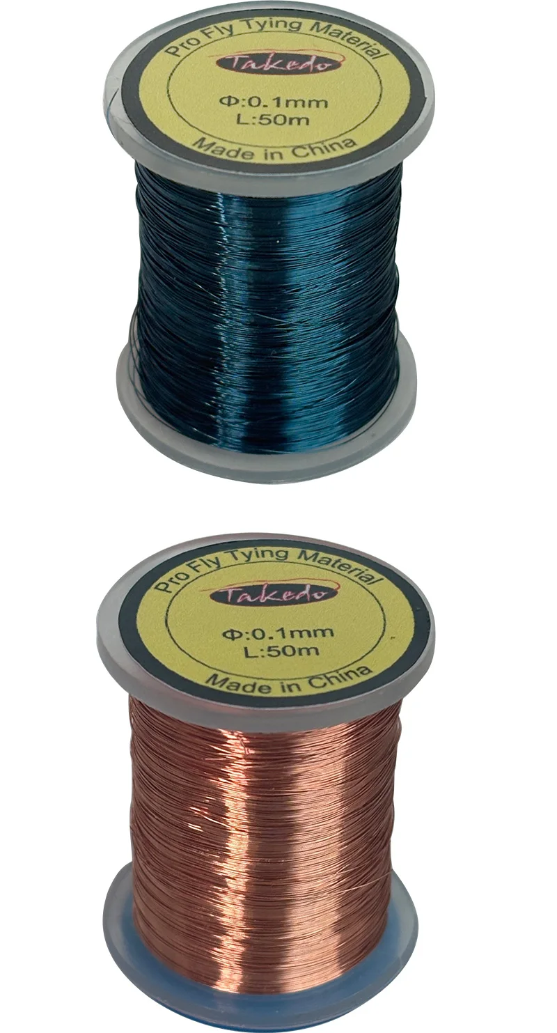 TAKEDO TN87 0,1 MM 50M/carrete atado de moscas alambre de cobre para cebos de señuelo de mosca cuerpo acanalada plomo agua Metal atado de moscas hilo