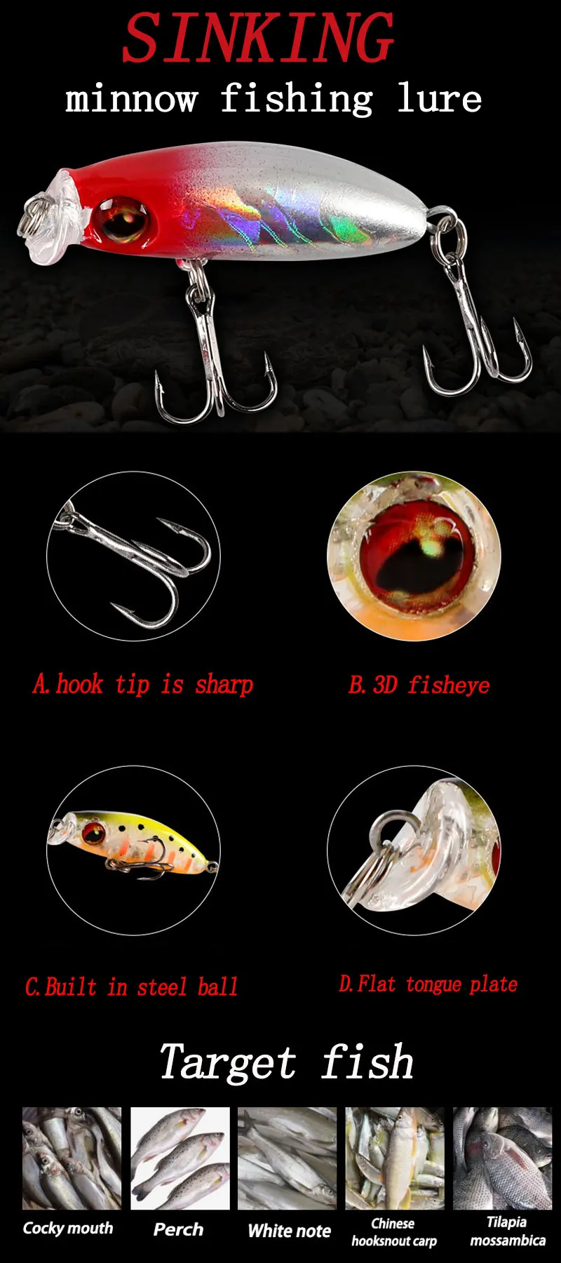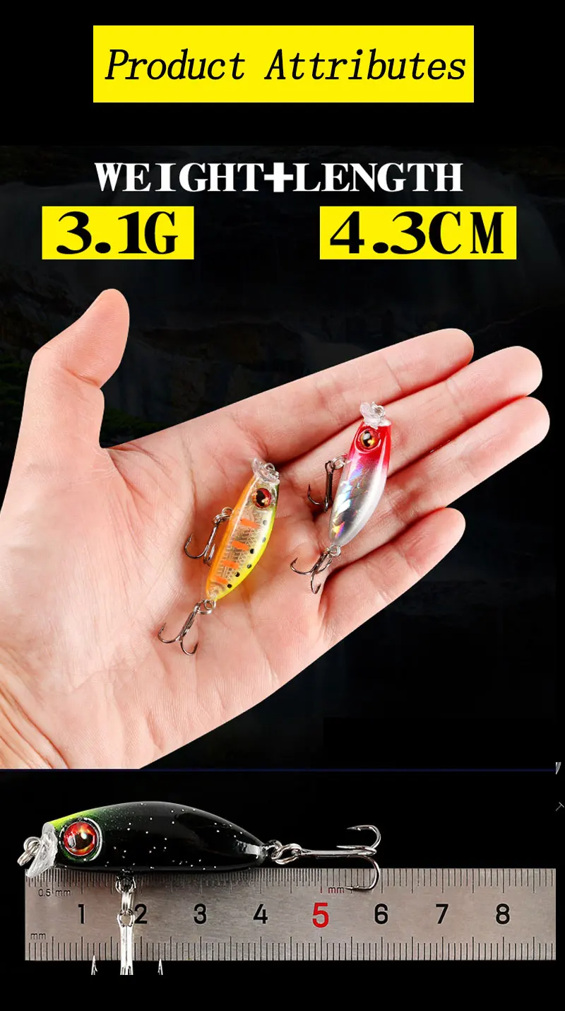TAKEDO YH05 cebo Artificial 8 colores juego de Señuelos de Pesca hundimiento plástico Popper cebo de Pesca Mini Minnow Wobblers Señuelos de Pesca
