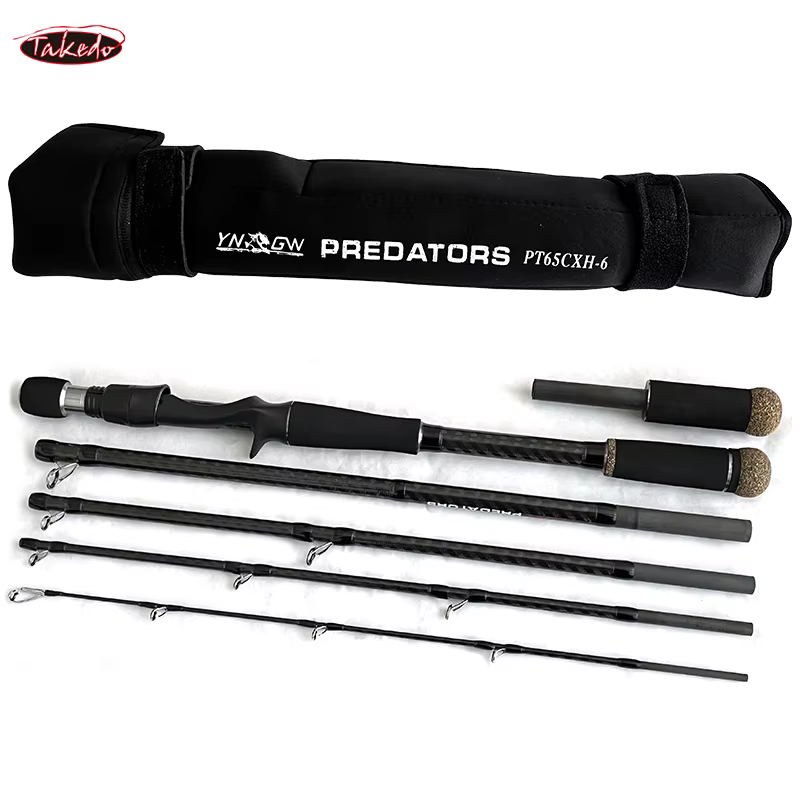 TAKEDOTN92 PT65CXH-6 caña de pescar giratoria de viaje de alta calidad, señuelo de lubina de fibra de carbono, cañas de fundición para Surf, caña ajustable de 6 secciones