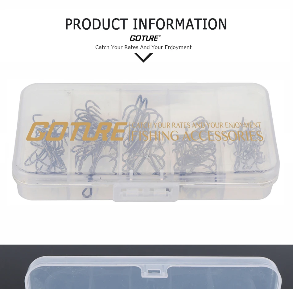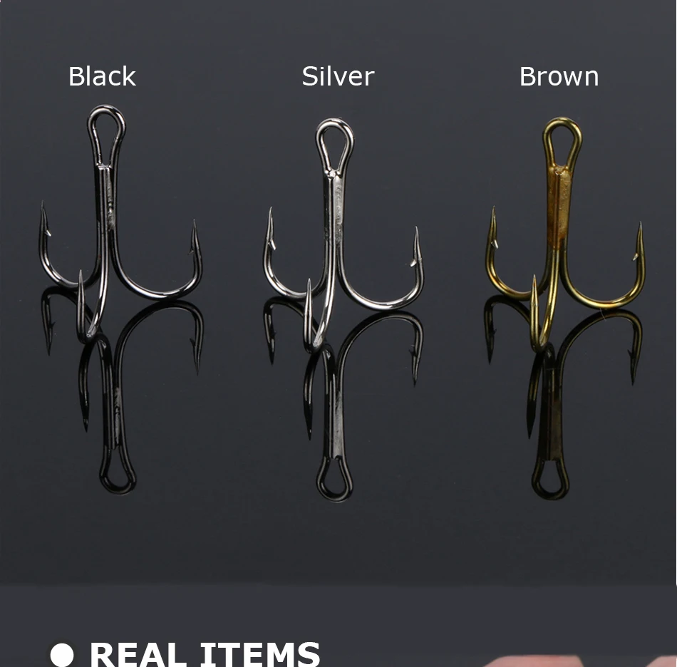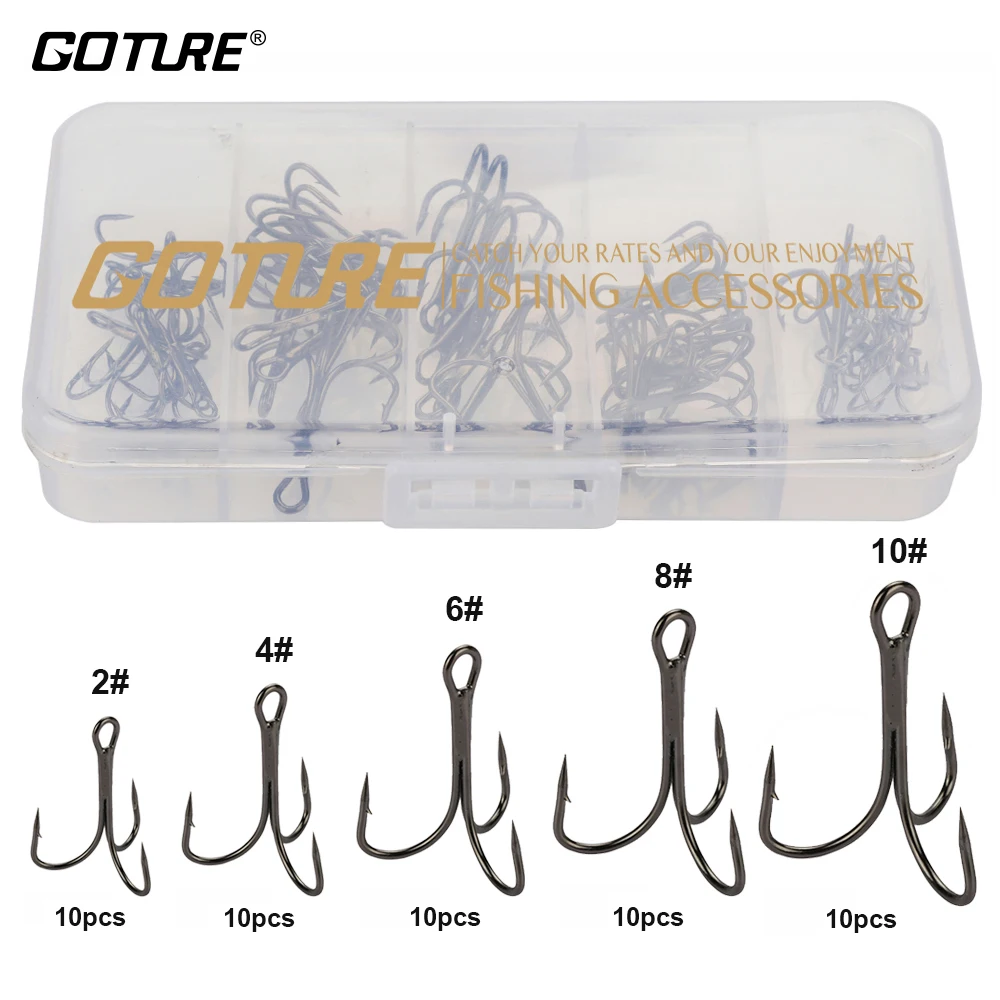 Tamaño del juego de anzuelos de pesca triples Goture# 2/4/6/8/10 Acero Alto Carbono Plata Negro Marrón para Anzuelos de Pesca de Carpa Japón 50 unids/caja